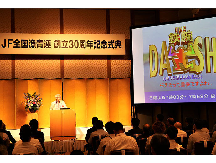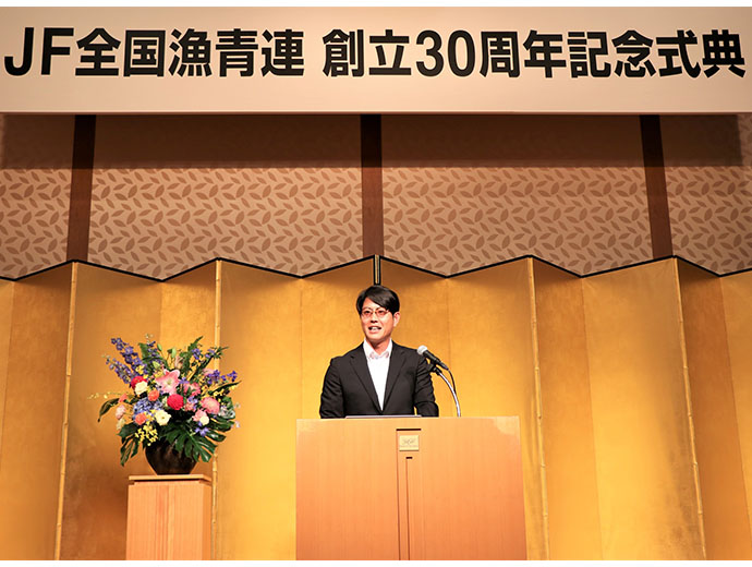 日本の漁師たち JF全国漁青連が30周年記念行事を開催 2023.8.31 JF全漁連編集部 印刷する 漁業協同組合青年部の全国団体であるJF全国漁青連は7月31日、創立30周年記念行事をホテルグランドアーク半蔵門で開催しました。 記念式典と記念パーティーの2部構成で開催1992年3月に発足し、昨年30周年を迎えましたJF全国漁青連。これまで、会員相互の連携強化を図るとともに、各都道府県の青壮年部などの活動を強化・促進し、漁業協同組合を基礎にして日本漁業の維持・発展と漁村文化の向上に資することを目的に、さまざまな活動に取り組んできました。 30周年の記念行事は、新型コロナウイルス感染拡大防止の観点から、開催が1年延期となりましたが、このほど記念式典と記念パーティーの2部構成で執り行われました。 記念式典では感謝状の贈呈や記念講演を実施記念式典では、川畑友和JF全国漁青連会長が主催者を代表してあいさつしました。川畑会長は、世界的な環境変化などを話題に挙げた上で「特に海の環境を守る取り組みなどは、時間と労力がかかる。だからこそ、われわれ青年漁業者が中心となって動かなければならない。たくさんの難題が待ち受けていると思うが、今後の日本の水産業を盛り上げていくためにがんばっていく」と述べ、関係者に理解と協力を求めました。 あいさつする川畑JF全国漁青連会長来賓あいさつでは、坂本雅信JF全漁連会長が創立30周年のお祝いの言葉を述べるとともに、「我が国の伝統的な漁業や魚食文化は紛れもなく世界に誇れるものであり、絶やすことなく、将来に受け継いでいかなければならない。浜の第一線でさまざまな実践活動をされている青年部の皆さんの活躍とアイデアが必要不可欠。先人から引き継がれた伝統に、新たな発想や視点を加えて頑張ってほしい」と全国の青年部の活躍に期待するメッセージを送りました。 来賓を代表して挨拶する坂本JF全漁連会長続いて、20周年以降の2012年時からの歴代会長5人(角好美さん、志賀基明さん、菅原幸洋さん、平山孝文さん、中村清作さん)が壇上に登り、川畑会長から感謝状が手渡されました。 川畑会長と歴代会長5人が記念撮影(写真左から川畑会長、角さん、志賀さん、菅原さん、平山さん、中村さん)その後、記念講演が行われ、日本テレビ「ザ!鉄腕!DASH!!」の出演でも知られるNPO法人海辺つくり研究会理事・事務局長の木村尚さんが海辺の環境保全に取り組む若手漁師たちに期待の声をかけました。 木村さんは「漁師の皆さんにとってのインフラは海。このことを一番知っている漁師の皆さんにしかできないことがたくさんある。JF全国漁青連の皆さんには次の時代をつくっていくことにチャレンジしてほしいし、我々も協力していく」と語りました。 海辺の環境保全をテーマに記念講演する木村さん式典終了後に記念パーティー開催式典終了後には記念パーティーが開催されました。全国の青年部の役員やJF全国漁青連の歴代会長、関係団体の役員らが懇親し、一致団結してこれからの日本の水産業を盛り上げることを誓い合いました。 記念パーティーで乾杯する参加者たち漁業の若手と農業の若手がタッグを組んだ、コラボ動画を公開また先日Sakanadiaでも紹介していた、JF全国漁青連と農業協同組合青年部の全国団体である全国農協青年組織協議会(JA全青協)とのコラボ企画動画が、8月31日より公開されています。 紹介記事はこちら↓ 「漁業と農業の若手がコラボ!自慢の海産物と農作物をおいしく料理して動画でPR」 「島国日本のおいしいお魚と、農業大国日本のおいしいものをコラボして、抜群にうまいものを一緒に食べよう」とスタートした本コラボ企画。漁業と農業それぞれのメンバーが持ち込んだ食材を、実際に海や農地などで漁獲・収穫しているところから紹介しているのも必見です。ぜひ、動画をご覧ください。 ↓ ↓ ↓ 📺【JA全青協×JF全国漁青連】農業・漁業の若手生産者がつくる日本の味「寿司」JF全漁連漁師若手青年部JF全漁連編集部漁師の団体JF(漁業協同組合)の全国組織として、日本各地のかっこいい漁師、漁村で働く人々、美味しいお魚を皆様にご紹介します。 地域産業としての成功事例や、地域リーダーの言葉から、ビジネスにも役立つ話題も提供します。 SakanadiaFacebookこのライターの記事をもっと読む