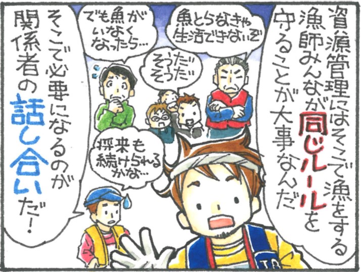 【漫画でわかる】日本の魚の資源管理 最終回「ルール、どうやって決めてるの?」航くんが紹介する日本の魚の資源管理もついに最終回です。 今回は、どうやって資源管理のルールを決めているのかについて。 ここでご紹介するのは、漁師が住んでいる地域の目の前の海で漁業をする「沿岸漁業」の資2020.3.24海と魚を守る古結 あかね(こげつ あかね)