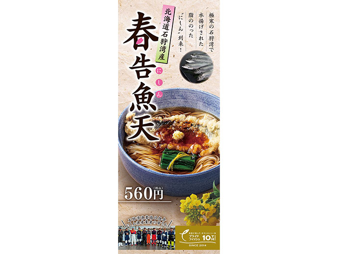 旬の魚を小諸そばで!「春告魚(にしん)天そば」を期間限定で提供中JF全漁連は、期間限定でJF北海道ぎょれんと「小諸そば」(運営:株式会社三ッ和)とのタイアップによる、北海道のプライドフィッシュ「石狩湾のニシン」を使った「春告魚(にしん)天そば」の提供を小諸そば592024.1.30お知らせJF全漁連編集部