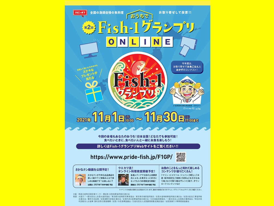 「第2回おうちでFish-1グランプリ―ON LINE―」開催! 2021.11.1 JF全漁連編集部 印刷する Fish-1グランプリのスピンオフイベント 「第2回 おうちで Fish-1グランプリ-ONLINE-」を11/1~11/30に開催!JF全漁連は、11月1日(月)~11月30日(火)まで「第2回おうちでFish-1グランプリ―ON LINE―」を開催します。新型コロナウイルス感染拡大の影響により、昨年度に引き続き会場での開催を見送り、Fish-1グランプリのスピンオフイベントとして2回目のオンライン開催となります。 オンラインの『日本のどこにいても参加できる』強みを生かした本イベントを通じて、新しい生活様式に即したイベントの在り方や販路開拓を模索し、新たな国産水産物の消費拡大・魚食普及を喚起することを目的としています。 お取り寄せでお魚ごはんと おかずのコンテスト!産直通販サイト「JFおさかなマルシェ ギョギョいち」内の特設ページからプライドフィッシュや地魚を使った 丼ぶり・炊き込みご飯製品とおかず・おつまみ製品の販売します。購入した商品を食べて、一番おいしい商品に投票ページから12月10日(金)17:00までに投票してください。 ▶コンテスト参加の詳細ページ おうちでFish-1グランプリWEBサイトでは、さかなクンが出品商品について楽しく紹介する動画や、お魚のことをもっと知れて楽しめる「マリン・エコラベル・ジャパン(MEL)」「水産・海洋高校生」「漁業とSDGs」「おさかなぬり絵」やレシピ紹介、ダウンロードコンテンツなど公開予定です。 あわせてお楽しみください! ※イベントの内容は変更となる場合がございます。 <第2回おうちでFish-1グランプリ-ONLINE-概要> ●開催日:2021年11月1日(月) 10:00 〜2021年11月30日(火) 17:00 まで(予定) 投票期間:12月10日(金)17:00 まで(予定) ●開催会場:Fish-1グランプリWEBサイトおよび産直通販サイト「JFおさかなマルシェ ギョギョいち」内でのオンライン開催 ●主催:国産水産物流通促進センター構成員、全国漁業協同組合連合会 * * * 新しい生活様式の中での魚食推進と国産水産物の消費拡大を2013年度から2019年度にかけて毎年東京 日比谷公園他にて「Fish-1グランプリ」を開催し、会場に来場した消費者に、出品料理や商品を食べて投票してもらい、ステージや展示・体験ブースを通して、国産水産物の魅力を紹介してまいりました。しかしながら、昨年度は新型コロナウイルス感染症の拡大が続き、例えできる限りの感染防止対策を実施したとしても、来場者や出展者の方々の感染リスクを完全に排除することができないと判断し、「第8回Fish-1グランプリ(2020年度)」の開催は見送りました。 ▶第7回Fish-1グランプリ(2019年度)のレポート また、感染拡大に伴う緊急事態宣言や各自粛等の影響により、インバウンド需要や輸出の減少、飲食・宿泊業をはじめとする外食需要は著しく減少しており、その結果、産地在庫の滞留や魚価の下落、出荷量の減少、出漁制限等、産地サイドに多大な影響を与えております。一方では、巣ごもり需要により宅配型生協や通販による取り扱いが伸長するなど、新たな生活様式と販路開拓が進んでいます。 * * * コロナにに対応したスピンオフイベント「おうちでFish-1グランプリ-ONLINE-」とはこれらを踏まえ、新たな国産水産物の消費拡大を喚起すべく、スピンオフとして、今年のはじめ2021年1月22日~2月26日の約1カ月間「おうちでFish-1グランプリ―ON LINE―」を開催しました。開催内容として、通販サイト「JFおさかなマルシェギョギョいち」内でプライドフィッシュや地魚を使った丼ぶり製品の販売や各種動画配信などをオンライン上で実施しました。 ▶第2回「おうちでFish-1グランプリ―ON LINE―」レポート レシピ食育通販ギョギョいちプライドフィッシュさかなクンJF全漁連編集部漁師の団体JF(漁業協同組合)の全国組織として、日本各地のかっこいい漁師、漁村で働く人々、美味しいお魚を皆様にご紹介します。 地域産業としての成功事例や、地域リーダーの言葉から、ビジネスにも役立つ話題も提供します。 SakanadiaFacebookこのライターの記事をもっと読む