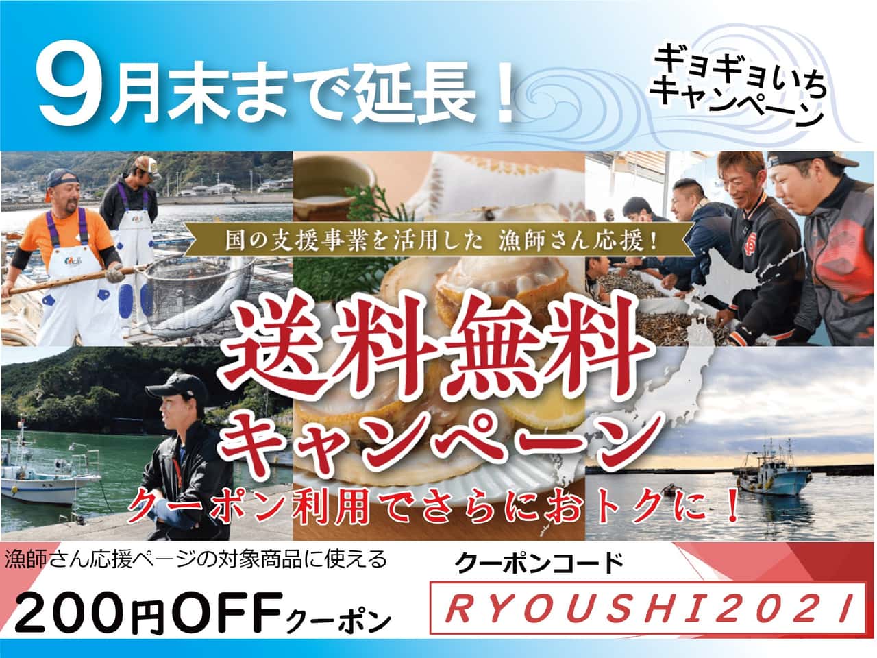 【9/30まで延長決定!】「JFおさかなマルシェ ギョギョいち」送料無料キャンペーン!200円OFFクーポン付き!全国各地の新鮮な水産物・加工品を販売する、産直通販サイト「JFおさかなマルシェ ギョギョいち」の送料無料キャンペーン&200円OFFクーポンは、好評につき7月31日から9月30日まで延長します。 キャ2021.7.28お知らせJF全漁連編集部