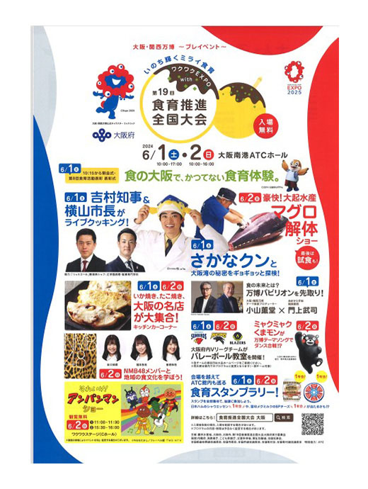 年に一度の食育の祭典! 「ワクワクEXPO with 第19回食育推進全国大会」in大阪!!“食の大阪で、かつてない食育体験。”と銘打った「ワクワクEXPO with第19回食育推進全国大会」が6月1日(土)、2日(日)の2日間、大阪南港ATCホールで開催されます。 今年の食育推進全国大会は2024.5.22お知らせJF全漁連編集部