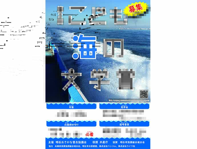 明石おさかな普及協議会、海をテーマにしたノンフィクション作品「第2回こども海の文学賞」作品募集中この情報は、明石市漁業組合連合会・兵庫県漁業協同組合連合会(JF兵庫漁連)からの提供です。 * * * 明石おさかな普及協議会は2024年1月12日(金)までの期間中、小学生・中学生を対象2023.9.19募集全国の漁連・漁協