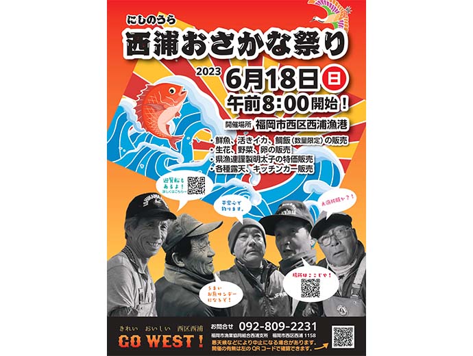 漁師メシに鮮魚も! 6/18(日)「西浦おさかな祭り」福岡で開催この情報は、福岡県漁業協同組合連合会(JF福岡ぎょれん)からの提供です。 * * * 昨年3年ぶりに復活し、大勢の来場者で大盛況となった「西浦おさかな祭り」。本年も6月18日(日)、福岡県2023.6.8イベント全国の漁連・漁協