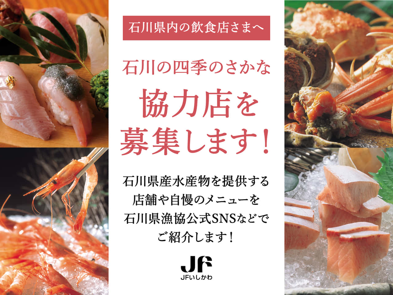 JFいしかわ、「いしかわ四季のさかなPR推進協議会」の立ち上げと、石川県産水産物を提供している飲食店情報募集この情報は、石川県漁業協同組合(JFいしかわ)からの提供です。 * * *2022.7.20募集全国の漁連・漁協