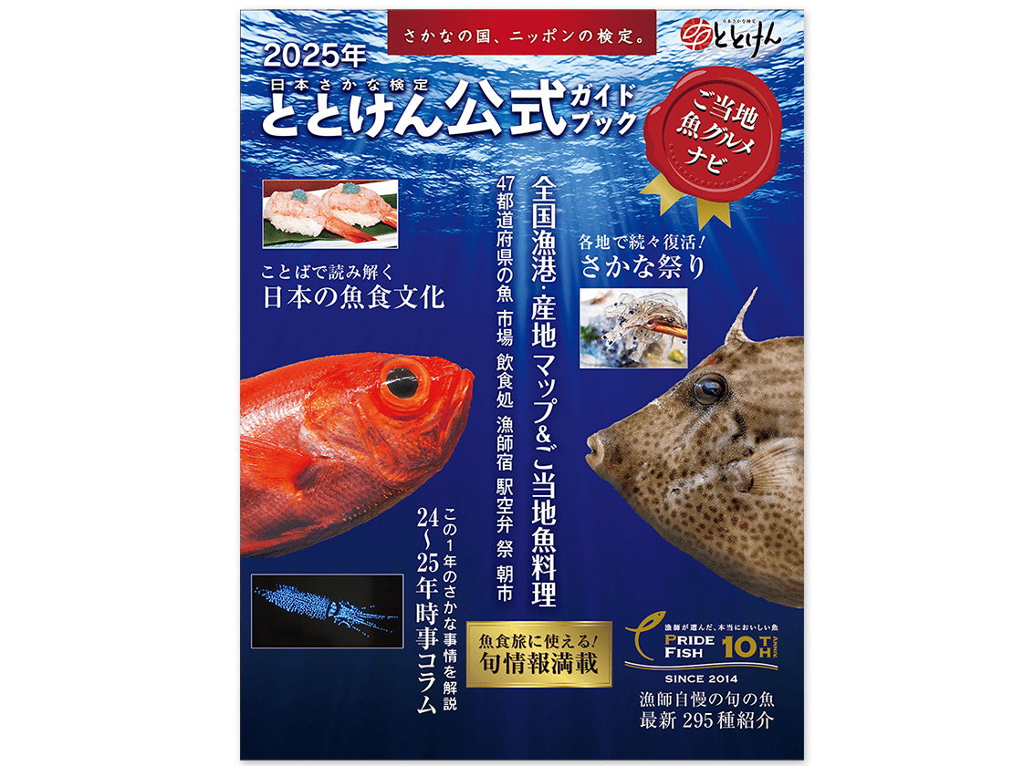 お知らせ 文化の日に開催(3級は11月10日まで開催)!「2025年日本さかな検定“ととけんオンライン”」受検申込開始 2025.7.3 JF全漁連編集部 印刷する 今年度も日本さかな検定(ととけん)の受検申込が始まりました! 魚食の国ならではの検定,ととけん日本さかな検定,通称“ととけん”は,魚への関心や知識を深めることによって,古来より日本人の心身を育んできた魚食文化の魅力を再発見することを目的に誕生しました。“ととけん”という通称は,諸説ありますが,日本の子どもたちが愛着をもって魚を“とと”と呼んでいたことに由来するそうです。 自宅で受検できる手軽さも魅力検定試験はオンライン開催のため,現地に行かずともネット環境とパソコンがあればどこでも気軽に受検できます。移動時間や天候の心配がないのは嬉しいですね!1級と2級は11月3日(月・祝)に全国一斉開催,3級は11月3日(月・祝)から10日(月)の8日間開催されます。特に学生さんは季節柄,文化祭などの学校行事や部活動と被っていても受検の日程が組みやすくなっています。 検定対策には練習検定や公式ガイドブックの活用をととけん対策としてはもちろん,当日はじめてオンライン検定を受ける方の心の準備のために,ととけん公式HPでは練習検定が用意されています。オンライン受検がどのようなものか,ぜひ本番環境を体験してみてください。 また,ととけん受検者の必須アイテムとされる副読本「ニッポン魚グルメナビ25年ととけん公式ガイドブック」が7月1日(火)に発売されました。時事問題対策特集のページでは最新のさかな事情が掲載されており,さかなにまつわる社会情勢や環境問題など,広く世の中を理解するための幅広い知識を身につけることができます。その他,過去の副読本や問題集も専用通販サイトで販売されていますので,受検予定のある方はぜひご覧になってみてください。 受検のお申し込みや模擬問題等の詳細については,ととけん公式WEBサイトをご覧ください。 (JF全漁連は「日本さかな検定」に協賛協力をしています) ▶日本さかな検定(ととけん)公式WEBサイト レシピ食育JF全漁連SDGsプライドフィッシュ漁業法イベントさかなクンJF全漁連編集部漁師の団体JF(漁業協同組合)の全国組織として、日本各地のかっこいい漁師、漁村で働く人々、美味しいお魚を皆様にご紹介します。 地域産業としての成功事例や、地域リーダーの言葉から、ビジネスにも役立つ話題も提供します。 SakanadiaFacebookこのライターの記事をもっと読む
