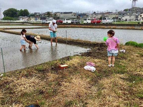 食育 【発酵子育てキッチン】家族で米づくり体験 2020.12.25 高木 佐知子(たかぎ さちこ) 印刷する 糀マイスター高木佐知子さんの新連載! 現役ワーママのリアル食育奮闘記「発酵子育てキッチン」が始まります。 家族で田んぼのオーナーに!レンガに子どもが描いたネーム札今年はなんと!家族で米作りに参加しました。 私は千葉県北西部の流山市に住んでいます。15年前につくばエクスプレスという高速鉄道線が開通してから急速に開発が進み、今では「都心に一番近い森のまち」として人気のベッドタウンです。 そんな流山市は、元々自然豊かで農業が盛んな町。今どきの商業施設が立ち並ぶ駅前を少し離れると、のどかな田園風景が見られます。 私たち夫婦も平日は都心に通勤する身ですが(仕事柄、コロナ禍でも在宅ワークができず…)、週末は地元の自然に癒され、子どもたちにとっても近場で自然遊びを楽しめる恵まれた環境です。 裸足で田んぼに入ってどろんこ!ぬるっと温かったよ~そんな地元で、今年は家族で田んぼのオーナーになるという機会に恵まれました。 自宅から車で10分ほどのところにある田んぼです。近いのが魅力的! この田んぼは、市内で参加型のまちづくりを推進している「machiminまちをみんなでつくる((株)WaCreation運営)」という団体が主催しており、「流山お田んぼクラブ(代表・岩根宏さん)」が管理してくださっています。 左から「流山お田んぼクラブ」岩根宏さん、高木、「(株)WaCreation」手塚純子さん(撮影:山田香保里氏)高木家は畑を借りて野菜作りをしていたこともあり、これまでも農業体験には積極的に参加しています。私は農家の祖父母の元、畑遊びで育ちました。夫も元々野菜作りが好き。でも米作りは初めて!日本の大切な主食を育てる。いつか子どもたちと一緒に体験したいと思っていた念願が叶ったのです♪ 田植え、草取り、稲刈り田植え(5月)オーナーと言っても、普段の田んぼの管理はお任せできたので、私たち共働き家庭でも無理なく参加できました。それでも、せっかくの田んぼ体験ですし、任せっきりにならないよう月1回の農作業にはフル参加しました。 収穫までの主な農作業は下記の4回でした。 田植え(5月) 草取り(6月) 草取り2回目(7月) 稲刈り(8月) 初めての田植え体験は、数メートル植えただけで腰に負担が! 泥に足を取られるし、前かがみの姿勢…。手植えは体験のみで、あとは田植え機でと聞いてホッとしました(笑)。 草取り1回目(6月)草取りは、みんなで裸足で田んぼの中に入って水の中に生えた雑草を抜きます。この時は少ないように思えましたが、1か月後の2回目の草取りでは、深く根を張って大きく伸びた雑草が!雑草は小さいうちに取る大切さを知りました。 草取り2回目(7月)6月はまだまだ膝下だった稲の高さも、7月には子どもの体が隠れるほどに! 稲の成長の早さに驚きました。雑草もずいぶんと伸びるわけです。 稲刈りしてご満悦の高木(8月)そうこうするうちに、あっという間に稲刈りの時期に。時は猛暑真っ盛り。 鎌で稲束を刈る体験ももちろん初めてで、ザクッ、スパッと切れる感触が気持ちよかった~! しかし、昔の人は全部手作業だったなんて頭が下がります…。 手刈りは数メートルの体験で、あとはコンバインにお任せでした。再びホッ(笑)。 お楽しみは新米♪新米とブリコロコロ♪(自家製ブリの角煮)自分たちで初めて収穫した新米で炊き立てのご飯。 それはもう筆舌に尽くしがたい喜びとおいしさでした。 ふう~。やっぱり日本人はごはんだなあ♪そしてお魚がぴったり! ごはん大好きなうちの娘たちは「おかわり!」が止まりませんでした。 流山産コシヒカリ。本当においしいんですよ~! しかし・・・、何度言ってもお茶碗に米粒を残すことがある娘たちに 「コラ~!ごはん粒を残しちゃダメって言っているでしょ!お米作るのは大変だったでしょう?」 とつい説教じみてしまう母。 そこで、田んぼの思い出を娘にたずねると・・・ 「鬼ごっこや虫捕りが楽しかったよ♪」 ですって。そっちですか・・・(苦笑)。 でも、楽しい思い出になって何よりです。 口うるさいかもしれないけど、「(ごはん粒を)集まれして、一粒残さず食べようね~!」は 口を酸っぱくして言い続けたいと思います(一度で覚えてほしいけど・・・)。 飽食の時代に大切なこと。 さて、この田んぼで体験できたのは、米作りや新米のおいしさだけではなかったのです。 続きは次回へ・・・・・・。 日々のおいしい暮らしを発信中 Cozy Kitchen〜醸す台所〜 Facebook Instagram 食育発酵高木 佐知子(たかぎ さちこ)Cozy Kitchen代表。糀マイスター、みそソムリエ。 「発酵子育てキッチン」連載がスタート! 2019年11月~2020年11月まで、「糀で時短レシピ」を連載。糀の力を活用した、簡単だけどおいしくてヘルシーなレシピを紹介してきました。 2020年12月からは、「発酵子育てキッチン」と題し、リアルな子育て・食育奮闘記の連載がスタートしました。 【現役ワーママの食育事情―「発酵子育てキ