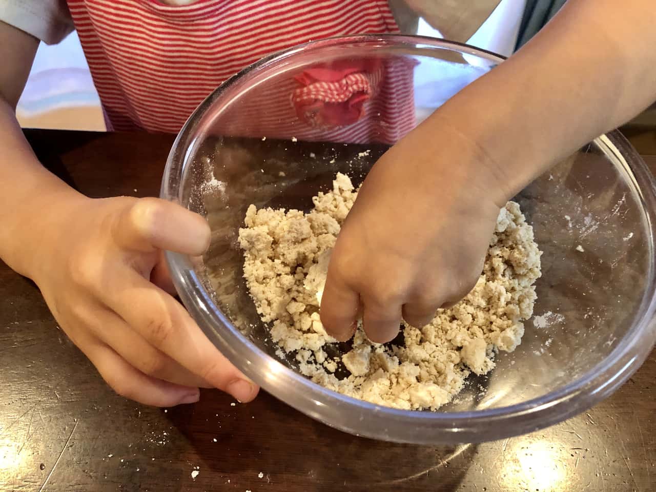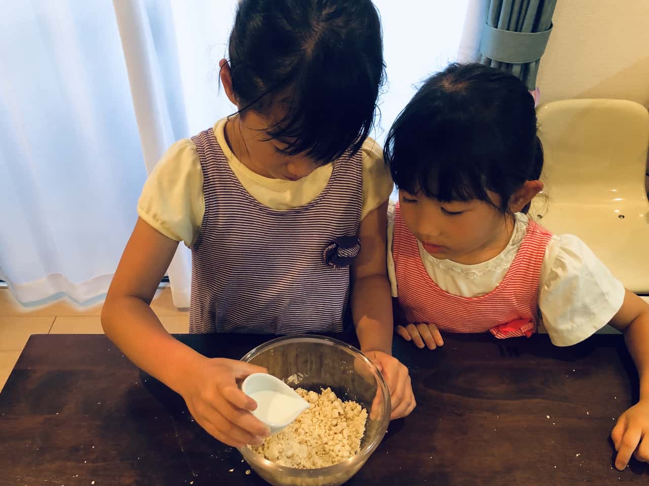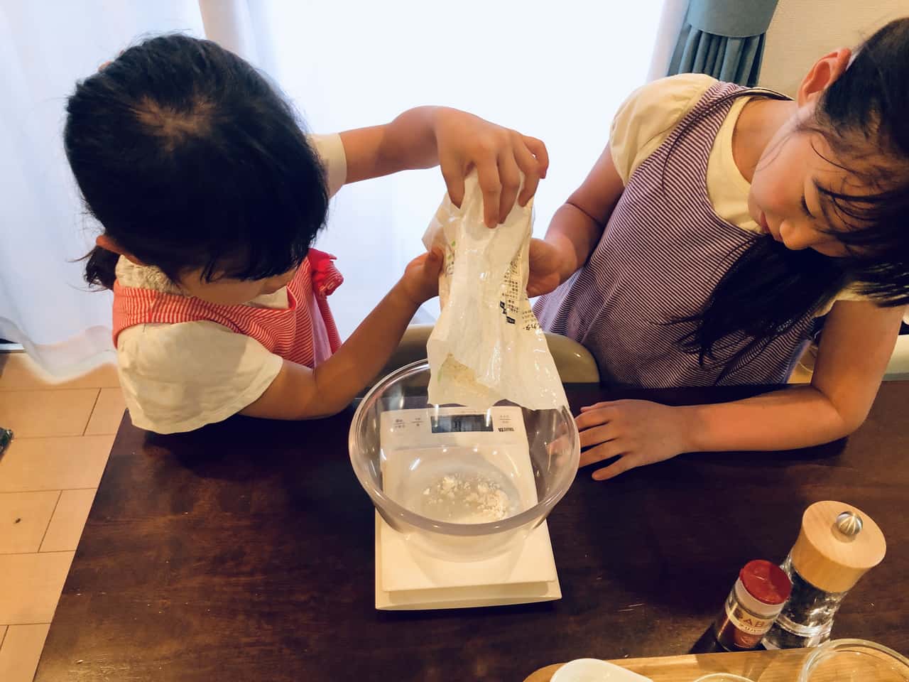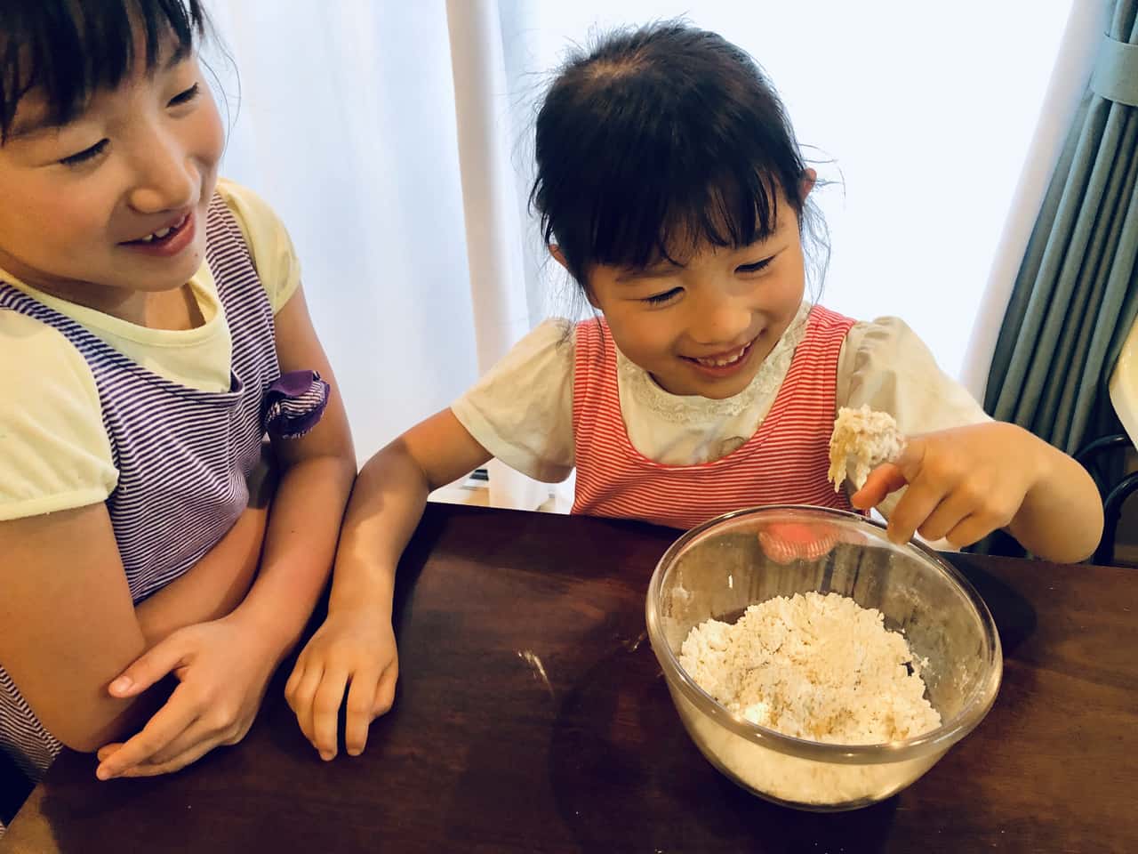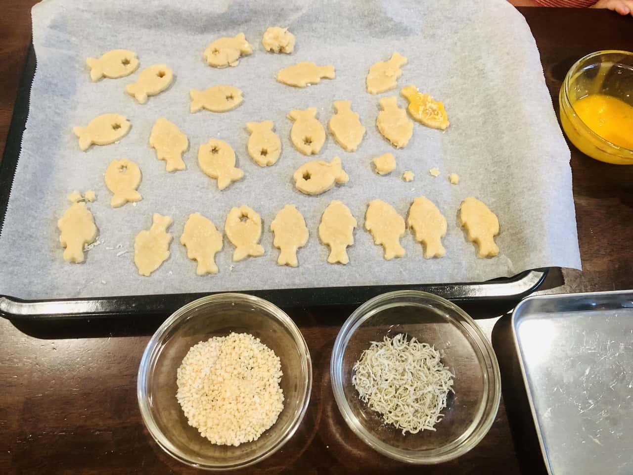 食育 【発酵子育てキッチン】塩味おやつ“おさかなクラッカー”を作ってみよう♪ 2021.6.4 高木 佐知子(たかぎ さちこ) 印刷する 週末に、7歳の次女と5歳の三女と一緒にクラッカーを作ってみました♪ お菓子作りは休日のたまのお楽しみ。特に、生地をこねて、丸めて、のばして、型を抜いて焼くクッキーは、子どもと作るお菓子の定番です。 手作りおやつといえば、焼き菓子などの“甘いもの”いわゆるスイーツを作ることが多いのですが、たまには“塩味のおやつ”もいいかも!と、思いついたのがクラッカー。子どもたちの大好きな型抜き作業もできます。 クラッカーに、私が個人的に大好きな「小魚アーモンド」をイメージして、「ちりめんじゃこ」と「アーモンド」をトッピングします。 満足感があり、カルシウムもとれるおやつです♪ 【小魚アーモンドクラッカー】の材料&作り方材料はこんな感じ。 <材料>お魚型25匹分くらい(笑)。 薄力粉…100g きび砂糖…10g 塩…ひとつまみ なたね油…大さじ2 粉チーズ…大さじ2 牛乳…大さじ2~3 卵黄…適量 ちりめんじゃこ…適量 ダイスアーモンド…適量 スパイス…お好みでブラックペッパーやチリパウダーなど 今回は結局使いませんでしたが(笑)、トッピングすると大人のおつまみにも最高! 型は、もちろん!?お魚型(笑)。 かわいいでしょう~♡うちのお気に入りです。 クッキーにはもちろん、野菜の抜型にもなります。 ネット通販で「クッキー型 魚」などと検索すると、いろいろ出てきますので、欲しい方は探してみてね! まず、材料を計ります。キッチンスケールで計量。 これがね、実験みたいで子どもたちは結構好きなのですよ~。 では、作業スタート!(1)粉類(薄力粉・きび砂糖・塩)をボールに入れて、混ぜ合わせます。 お姉ちゃんがどーれ?と偉そうに見守っています(笑)。 (2)なたね油を投入して、手で混ぜます(そぼろ状)。 「フッ!フォー!」 なぜだかわかりませんが、急にテンションがあがってダンスをはじめた姉妹。激しいので写真がブレブレ・・・・・・苦笑。 はいはい、早く混ぜて~。 ベットベト~! なかなか進みません・・・・・・・汗。でもなんとか。 (3)こんな風にそぼろ状になったら、粉チーズを入れてさらに混ぜます。 (4)牛乳を入れてこねて、生地をまとめ上げます。 (5)麺棒でのばして(ここはちょっとむずかしいので私が手伝いました)。 (6)お待ちかねの型抜き!これが子どもたちは大好き~。 型が無くても、包丁でカットするだけでもOKですよ。 (7)仕上げに卵黄を塗って、ちりめんじゃことダイスアーモンドをトッピングします。 ・・・・・・の前に、ちりめんじゃこといえばお決まりの!? 「チリモン(ちりめんモンスター)を探せ!」 イワシの赤ちゃんにまじって、こんな子たちが! 赤くて細長い魚と、黄色っぽくて模様がある魚。 何の赤ちゃんだろう~?ママも調べないとわからないから、宿題にさせてね。 (8)トッピングができたら、170℃に予熱したオーブンで約20分焼きます。 熱いので、ここはしっかり大人がサポートしましょう。 こんがりきつね色に焼き上がりました~♪ (9)アミにのせて冷ましたらできあがり~! いただきま~す!おつかれさま。途中やっぱりけんかしちゃったけど、食べるときには仲良し笑顔がこぼれます♪ 「おいし~い!」 よかった~。高校生のお姉ちゃんも、甘いもの苦手なパパも気に入ったみたい。でも、スイーツ好きのお姉ちゃんは、やっぱり甘いクッキーの方がいいかな…ですって(笑)。 小魚アーモンドの風味とは別物だけど、焼くとちりめんじゃこの香ばしさがアップして、とっても美味しくできました。チーズ風味でお酒のおつまみにもぴったり。 塩味の手作りおやつ。 市販のスナック菓子の代わりにいかがでしょうか♡ 梅雨の時期のおうち時間に、よかったらお子さんと一緒に作ってみてくださいね。 日々のおいしい暮らしを発信中 Cozy Kitchen〜醸す台所〜 Facebook Instagram レシピ食育発酵高木 佐知子(たかぎ さちこ)Cozy Kitchen代表。糀マイスター、みそソムリエ。 「発酵子育てキッチン」連載がスタート! 2019年11月~2020年11月まで、「糀で時短レシピ」を連載。糀の力を活用した、簡単だけどおいしくてヘルシーなレシピを紹介してきました。 2020年12月からは、「発酵子育てキッチン」と題し、リアルな子育て・食育奮闘記の連載がスタートしました。 【現役ワーママの食育事情―「発酵子育てキッチン」連載にあたり】 年の差三姉妹(15歳・7歳・5歳)の子育てと通勤生活に奔走する中、“糀でおいしく健康&毎日無理ない炊事”をテーマに日々料理研究している高木です。 子育てと通勤をこなす日々は本当に忙しいです! 高木家では、毎日の炊事は時短が基本だけどときどき子どもたちと“キッチンに立つ”時間を大切にしています。 料理を任せたときの、子どもの真剣な眼差し。これがたまらなくいいのです。そしてできた!時のキラキラした笑顔。きっと子どもの力になると信じています。 「食べること」=「生きる力」。 「食育」