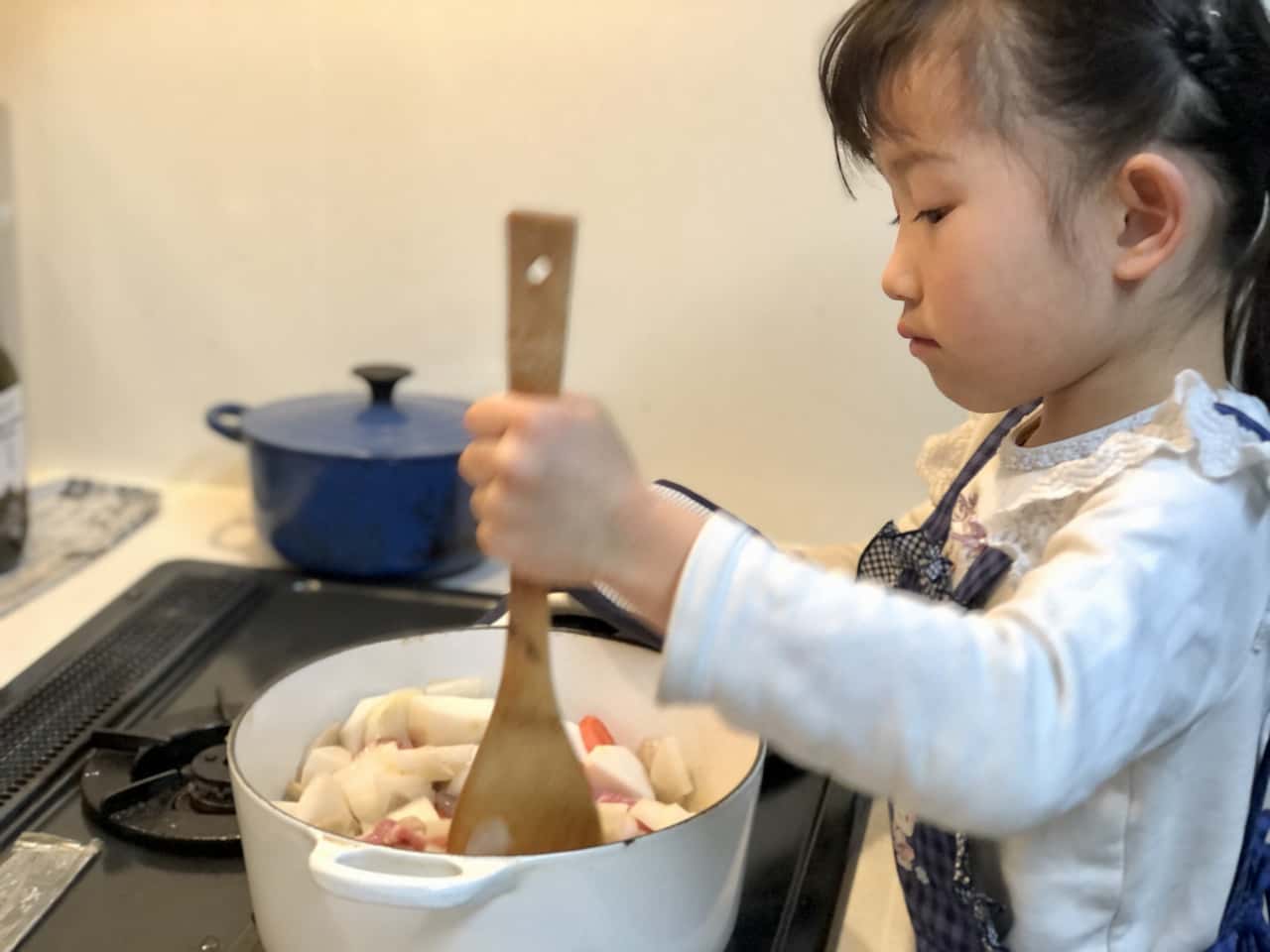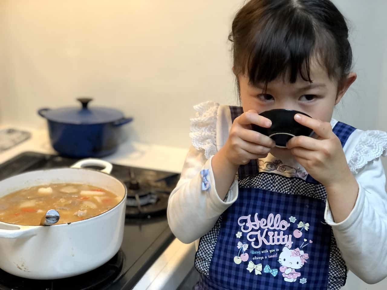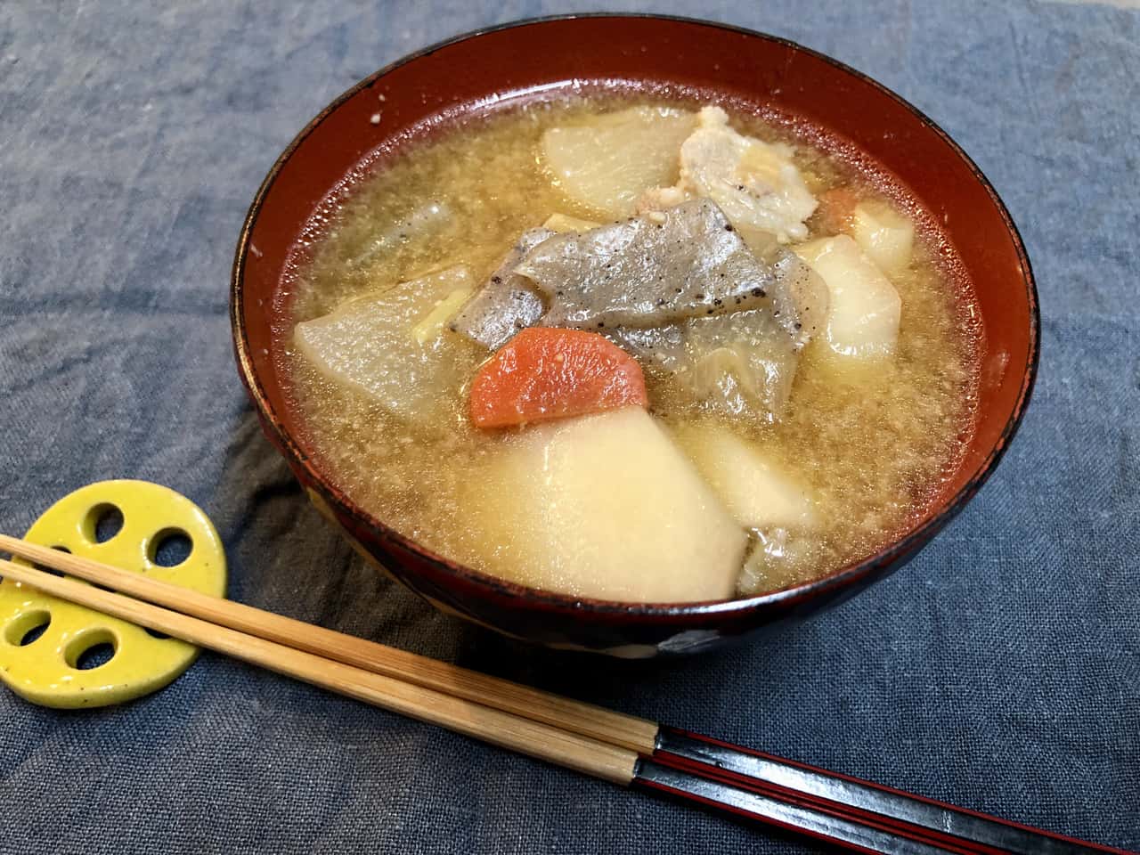 食育 【発酵子育てキッチン】みそ汁大好き! 自家製My味噌で、6歳娘と一緒に作る豚汁 2022.3.24 高木 佐知子(たかぎ さちこ) 印刷する 自家製味噌と豚汁今年の冬はとても寒かったですね~。 しかし、桜も花開き、本格的な春はすぐそこ!仕事帰りの空も明るくなってきて、気持ちも軽くなります。 わが家では、2月中に今期の自家製味噌の仕込みを終えました。私は味噌作りの講師もしているのですが、今年は地元で味噌作り講座を2回開催できてほっとしているところです。 新型コロナウイルス感染状況が心配な時期にもかかわらず、味噌作り講座は例年以上に人気でした。食で健康を整えたいという方が増え、年々発酵食品や日本の伝統食品への関心が高まっている気がします。 さて、昨年うちの姉妹が仕込んだ自家製My味噌※ができあがりましたよ~。 ※昨年仕込んだ自家製My味噌 ▶Sakanadia記事「【発酵子育てキッチン】親子で味噌づくりのススメ」 2021年3月に仕込んだ自家製My味噌わが家では、6歳の三女が大の味噌汁好き!毎食必ずおかわりするほどです。 「このお味噌でみそ汁をつくりたいな~!」「お野菜を切りたい!」と三女。 ならばと、みんな大好き! 根菜がたっぷり入った豚汁をつくることにしました。 * * * 自家製My味噌で豚汁を作ろう♪まず、材料を揃えます。 豚汁に入れる野菜は、冷蔵庫にあるもの何でもいいと思いますが、やはり大根・人参・ごぼう・芋類といった根菜は定番でおいしい。今回使った材料は7種類! 豚肉・大根・人参・ごぼう・里芋・長ネギ・こんにゃくです。 まずはこんにゃくを切って、アク抜き。 包丁を握る子どもの横顔。この真剣な眼差しがたまらなくいいのです。 ツルンと滑るけど大丈夫かな~。しっかりそばについて見守ります。 お鍋に水とこんにゃくを入れて火にかけて、アク抜きをする間にお次は人参。 ヘタを落とすと……。 「わあ~!きれいな模様! 穴がちょっと気持ち悪い……」だそうです(笑) 切り口を観察するだけで新鮮な驚きがあります。 「人参はかたいね、でも楽しい~」とトントン。 思い切りのいい三女はどんどんスピードアップ。ハラハラします(汗) でも、「早すぎてお母さんみたいになっちゃった~」なんておどける姿がかわいい♪ お肉にも挑戦! スッと刃を入れないと切れないよ~。食材によって包丁の動かし方が違うことも学びます。 その後もよだれをたらすほど(笑)夢中で大根などを切っていましたが……、「疲れちゃったよ……」と座り込んでしまいました。 うんうん、頑張ったね。お野菜たくさんあるものね! あとはママが切るよ。 下ごしらえ完了!「さあ、お野菜炒めるよ~!」と声をかけると、私が残りの野菜を切っている間に一休みした娘は「やるやる~!」と元気に復活。 しっかり押さないとガスだけが出て危ないよ。 慣れない点火も練習です。 お野菜たっぷりだから、混ぜるのも大変だね。でも「大丈夫!」と得意顔です。 お鍋が熱くなってきて、ジュウジュウと野菜の水分と油の混ざる音。香り立つお肉とごぼうの匂い。野菜に火が通ると透明感が出てくる。お料理は、「五感」をフル活用した経験なのです。 さて、お水を入れて、アクを取りながら煮込んだら、いよいよ自家製My味噌の投入です♪ 「どれどれ~?味見させて~」と2つ上のお姉ちゃん。 「ダメ~私のだよ!」ひとり占めしたくなるほど、愛着のあるMy味噌だね。 姉妹ゲンカはすぐおしまいで、味噌にもニコニコマーク。 こういうこと思いつくのは、子供らしくて最高! お味噌を溶いたらお楽しみの…… お味見タイム♪ 「おいしい!」でもちょっと薄いかな、もうちょっとお味噌を足そうか。 味見だって、味覚の練習です。大切なこと。 「全部私がやるよ!」と家族5人分の豚汁をお椀によそいます。 「できたよ~!」パチパチ。よく頑張ったね。さあ召し上がれ! 「おいし~い!!!」 慣れないお料理をして、疲れたね。 でも、楽しかったね!達成感いっぱいだね! 自分でやり遂げた時のキラキラした気持ちは、きっと子どもの力になると信じています。 家族みんな大好きな豚汁。お鍋にたっぷり作ったけど、あっという間に無くなりました。 お肉だけじゃなくて、サケを入れた石狩汁やブリ汁などお魚と野菜の味噌汁も好きです。 味噌はそのまま野菜やごはんにつけてもおいしいけど、味噌汁にした時の、出汁や具の旨味が溶け込んだ味わいが素晴らしいですよね! * * * 次世代へ繋ぎたい味噌文化サワラのあら汁約1300年前(奈良時代)には味噌の原型となる調味料があり、室町時代からは庶民のあいだでも味噌汁が飲まれるようになったそうです。 時代が変わっても、長年飽きることなく飲み継がれてきた味噌汁ってすごいですよね。 「医者に金を払うよりも味噌屋に払え」 「味噌汁は朝の毒消し」 「味噌汁一杯三里の力」 など、味噌の健康効果を謳ったことわざはたくさんあります。味噌は美味しいだけでなく、私たちの健康を整えてくれることを昔の人は知っていたのですね! ご飯と味噌汁は和食の基本で