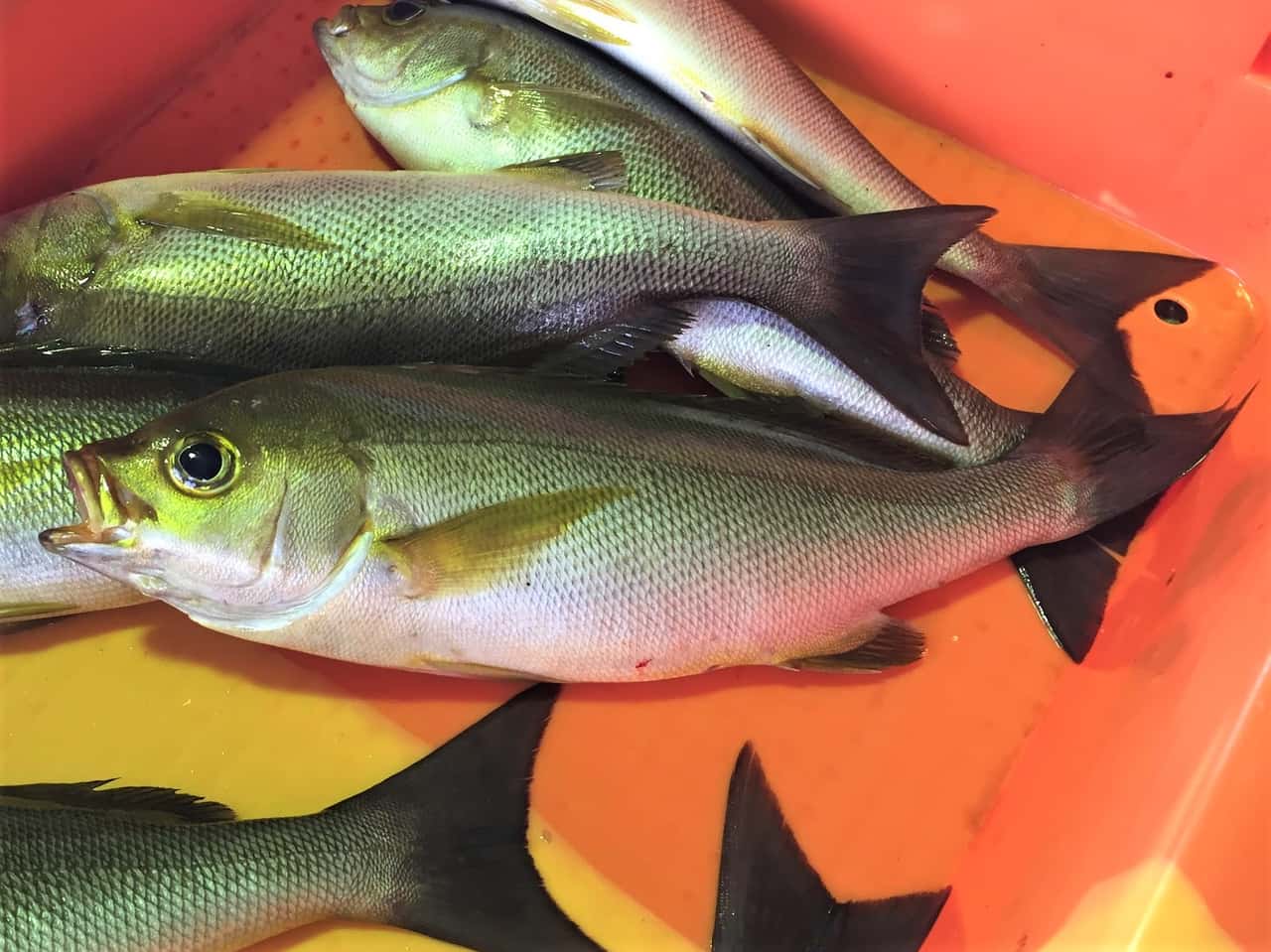 ハレの日お魚料理 イサキのハンバーグとフライdeくじらの親子バーガー 2021.6.15 小澤紀子・Rino (こざわ のりこ・りの) 印刷する もうすぐ父の日!親子で仲良く楽しくお魚バーガー作りに挑戦してみませんか? 今回は、ぜいたくにイサキを3尾使ったレシピ!1尾はたたいてハンバーグに、2尾はパン粉をつけてフライにしました。 そして、手ごねのパンをくじら型にして、可愛い親子のくじらバーガーをつくりました。 ぜひ、今年の父の日は、お魚をさばいてみたり、パンをこねこねしてみたり、親子で仲良く楽しくクッキング~挑戦してみてくださいね♪ 骨やヒレがかたい魚なので、調理する際や、食べるときには注意してください。 初夏が旬「イサキ」夏を代表する魚の一つ「イサキ」。身のしまった、くせのない白身の魚で、一般に「梅雨いさき、夏たかべ・・・」と言われるぐらい、初夏はイサキが美味しい時期です。 初夏から夏を旬とする魚の中では、比較的脂肪が多めで、DHAやEPAなどの脂肪酸も多く含まれるので、生活習慣病の予防に最適です。ビタミン類では、カルシウムの吸収をよくするビタミンD、体内の脂肪の酸化を予防し老化防止によいとされるビタミンEのほか、ビタミンA、B1、B12なども含まれます。 淡白な味でいろいろな食材と組み合わせやすい「イサキ」は、料理のバリエーションも豊富です。新鮮で大振りなものが手に入ったら、刺し身や塩焼きにするのがおススメ。ほかに、煮つけやバター焼き、ムニエル、から揚げなどの揚げもの、椀だね、中国料理の材料でも活躍しちゃいます。 * * * ≪レシピ≫イサキのハンバーグとフライdeくじらの親子バーガー【材料】 ●《イサキハンバーグ》ミニサイズ4個分 イサキ…1尾 塩…適量 玉ネギのみじん切り…1/3本 水切りした豆腐…1/4丁 溶き卵…1/2個分 味噌…小さじ1位 ●《イサキのフライ》 イサキ…2尾 塩コショウ…適量 小麦粉…大さじ2位 溶き卵…1/2 パン粉…大さじ4~5位 ●《くじらのバンズパン》 強力粉…180g 米粉…70g 塩…4g とかちの酵母(ドライイースト菌)…3g 水…50g てんさい糖…ドライイースト用5g、生地用25g 豆乳…100g ギーオイル(無塩バター)…20g ●《バーガーの具や飾りなど》 タルタルソース スライスチーズ 海苔 * * * 【つくり方】 ●《イサキハンバーグ》ミニサイズ4個分 (1)イサキは3枚におろし、両面に塩をふり、20分位置いておきます。その後、水で洗ってキッチンペーパーでふき取り、細かくみじん切りにします。 (2)ボウルに(1)と玉ねぎのみじん切り、水切りした豆腐、溶き卵、味噌を入れてしっかり混ぜます。 (3)フライパンにオイルをひき、4等分ずつ小判型に形をととのえて入れて、片面3分ずつ焼いていきます。仕上げにさっと醤油を塗ると美味しいです! ●《イサキのフライ》 (1)3枚におろしたイサキは軽く水気をふきとり、半分の大きさに切って塩コショウで下味をつけます。 (2)小麦粉→溶き卵→パン粉の順につけて、170~180℃の油で2~3分揚げます。 ●《くじらのバンズパン》 くじらバンズの材料です♪ (1)イースト作り。ぬるま湯に酵母とてんさい糖(5g)を溶かして15分ほど常温に置き、酵母を目覚めさせます。ブクブクと泡立ってきます。 (2)生地の生成。ボウルに強力粉・米粉・塩・てんさい糖(25g)を計量(塩とてんさい糖は離して置く)。豆乳と(1)のイーストを加え、スケッパーなどで混ぜ、粉っぽさがなくなったら台に取り出し捏ねます。 ギーオイル(無塩バター)を加えてさらに滑らかになるまで捏ねます。 (3)ある程度、滑らかな生地ができたら、丸めて30分位1次発酵させます。 (4)2倍くらいの大きさになったら、握りこぶしで軽くガスを抜き、大4小4の8分割にします。 →まず1/2に分割し、一つをさらに3分割、もう一つは1/3と2/3に分けて、2/3の方はさらに4分割にする。 (5)丸めて、濡れ布巾とラップをかけて15分位お休みします(ベンチタイム)。 (6)くじらの成型 ▼動画を参考にしてみてください! (7)濡れ布巾とラップをかけて20分位二次発酵!ひと回り大きくなったらOK! ★ここでオーブンの予熱を入れます。 (8)全体に溶き卵を塗り、オーブンで焼きます(190℃前後 10~12分)。 ●《バーガーの具や飾りなど》 スライスチーズ・海苔で目をつけ、口を包丁で切りこみ、イサキのフライやハンバーグ、タルタルソースなどを挟んだら、くじらの親子バーガーの出来上がり~♪ * * * 自然食育アドバイザーRinoの食材豆知識💗ドライイーストパン作りに欠かせないイースト菌。そもそもイーストとはなんでしょうか? イーストは、酵母菌の一種である微生物です。糖分と水分を与え、適切な温度にすることで働きます。 酵母が一番元気に働く温度帯は35~40℃。35℃以下、45℃以上では働きが鈍くなり、60℃以上では死んでしまいます。 ですから、パン作りをするときは、35~40℃ぬるま湯を使うとイーストの活動が盛んになり失敗しにくくなりますよ。 また、イーストは砂糖を養分として盛んに活動し、逆に塩に触れると活動が鈍る特徴があります。ボウルに材料