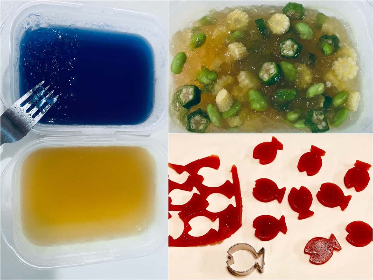 ハレの日お魚料理 スズキdeふんわりさっぱりムース~あつい夏のおもてなしに~ 2021.7.21 小澤紀子・Rino (こざわ のりこ・りの) 印刷する あつ~い夏がやってきました! 低脂肪、高タンパクなスズキを使って、ふんわりさっぱりのお魚料理に挑戦してみませんか? 海の日、オリンピック、お盆休み、今年の夏もお家で過ごすという方必見! 見た目はまるでデザート!?ひんやりさわやか~お酒のお供にもなるメニューです♥ 夏を代表する魚「スズキ」千葉県のプライドフィッシュ「船橋の瞬〆スズキ」 https://www.pride-fish.jp/(プライドフィッシュ公式WEBサイト)今回のお料理に使うスズキ(鱸)は夏を代表する白身魚。出世魚で、成長とともにセイゴ→フッコ→スズキと呼び名が変わるそうです。 白身魚の中でも淡白でクセが少ないので、新鮮なものはお刺身やカルパッチョで食べるのがおススメ。ちなみに、スズキを高級魚として扱うフランス料理では、ムニエルが有名です。火を通すと身がしまりしっかりするので、フライやポワレなどにしても美味しく召し上がれます。 スズキは、高タンパクで低脂肪なだけでなく、栄養素がとても高い魚です。特にビタミンが豊富で、ビタミンA(レチノール)、ビタミンB群(ビタミンB1、ビタミンB2、ビタミンB6、ビタミンB12、葉酸、ナイアシン、パントテン酸)、ビタミンC、ビタミンD、ビタミンE、ナトリウム、カリウム、マグネシウム、カルシウム、マンガン、リン、鉄、銅、亜鉛などを含みます。 タンパク質は、胃の粘膜をアルコールから守ってくれますので、この夏ホームパーティーやおもてなしにぜひ選んでほしいお魚です。 それでは、レシピをご紹介します! ≪レシピ≫スズキdeふんわりさっぱりムース【材料】4人分(ココット4個分)●《スズキのムース》 スズキ(白身魚)…150g位 白ワイン…大さじ1 塩…少々 ホタテ貝柱水煮缶(カニカマでもOK)…40~50g位 卵白…1個分 生クリーム…200g 塩… 少々 ●《コンソメジュレ》 水…250㏄ コンソメキューブ…1個 ゼラチン5g+水25㏄ 塩コショウ ●《青いジュレ》 バタフライピー…5g位(ティーパック1袋) 水…150㏄ ゼラチン3g+水15g (バタフライピーは、このコラムの後半「自然食育アドバイザーRinoの食材豆知識💗」コーナーで詳しく紹介します) ●《お魚トマトゼリー》 トマトジュース…100㏄ レモン汁…小さじ1 ゼラチン5g+水20㏄ ●《付け合わせ夏野菜》 オクラ…3~4本※ ヤングコーン…3~4本※ ※オクラとヤングコーンは塩ゆでして1㎝幅位の輪切りしておきます。 枝豆…20粒くらい (塩ゆでしてサヤから取り出しておきます) 【作り方】●≪コンソメジュレ・青いジュレ・お魚トマトゼリー≫ (1)ゼラチンは水大さじ2でふやかしておきます。 (2)≪コンソメジュレ≫水を沸騰させ火を止め、コンソメ、水で戻したゼラチン、塩コショウを加えきれいに溶かしたら粗熱をとり、容器に入れ冷蔵庫で冷やし固めます。 (3)≪青いジュレ≫バタフライピーのお茶をつくり、温かいうちにゼラチンを溶かします。粗熱をとったら容器に入れて冷やし固めます。 (4)≪赤いお魚ゼリー≫温めたトマトジュースにゼラチンを溶かし、レモン汁を加えます。平らな容器に入れ冷やし固めてからお魚の抜型で抜いておきます。 ●≪スズキのムース≫ (1)スズキの切り身に白ワイン、塩少々をふってさっと下茹でし、皮と骨をていねいに取り除きます (2)フードプロセッサーに、スズキ、かにかま、卵白を入れて混ぜます。さらに生クリームを加え滑らかなクリーム状にします。塩少々を加えて味を調えます。 (3)クリーム状にしたものをうすく油を塗ったココット型に入れ、アルミホイルをかぶせます。 (4)フライパンに水を1cm〜2cm注いで沸騰させ、ココット型を並べて8分〜10分弱火で蒸します。 (5)冷蔵庫でよ~く冷やしてからお皿に盛り付けます。冷やし固まったコンソメジュレをフォークなどで潰し、細かく切ったお野菜とあえて、ムースにかけます。青いジュレも同様にフォークで細かくし、所々アクセント的に添えます。お魚トマトゼリーを飾って出来上がり~♪ 自然食育アドバイザーRinoの食材豆知識💗バタフライピー今回は、「バタフライピー」のきれいな青色を利用して、海のイメージのジュレを作りました。 「バタフライピー」は、美しいコバルトブルーの色が何とも印象的なハーブティーです。嘘みたいにきれいな青色なので、私も初めて見た時は、着色料入り?と思ってしまいましたが、青いお花を咲かせるマメ科の植物(ハーブ)から出る天然の色です。大きく開いた花びらが蝶に似ていることからその名が付けられたそうです。ちなみに日本語だとそのまま「蝶豆」、タイ語だと「アンチャン」と呼ばれます。 天然色素に含まれる「アントシアニン」は、アンチエイジングやダイエット、美肌にも効果が期待できると言われていて、本場のタイでは30~40代の働く女性たちがマイボトルにバタフライピーを入れて持ち歩いているのだとか! 味を変化させたいときは、レモンなどの柑橘系の果汁を