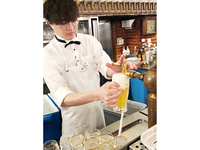 ニッポンさかな酒 ニシンと生ビール 文&写真:吉村喜彦 2026.2.19 吉村 喜彦(よしむら のぶひこ) 印刷する 万年筆とスーツケースの調整のために銀座に行った。 帰りに、久しぶりにビアホール・ライオン銀座七丁目店に立ち寄る。 高い天井がいい。 ゆったりとした席もいい。 昭和のモダンな雰囲気がある。 広々とした空間にたくさんひとが入り、 楽しそうにジョッキを傾け、それぞれ話の花を咲かせているが、うるさくない。 不思議と落ち着いた空気が流れている。 * * * このビアホール。 昭和9年(1934年)に開店以来、 太平洋戦争の空襲にもあわず、創業当時と変わらぬたたずまいを見せている。 まさに日本のビアホールの殿堂である。 ビール麦の収穫をする人たちを描いた大壁画も圧巻だ。 ここで飲む生ビールが、とにかく美味い。 するする飲める。 まったくのどに引っ掛かりがない。 苦みがエグくない。 ほのかなビターが、しっかりと舌を締めてくれる。 爽やかだけれど、浮ついていない。 ホップの上品な香りも心身をきれいにしてくれるよう。 ぼくは、ここの生ビールが世界中でいちばん好きかもしれない。 * * * ふつうのお店の生ビール・サーバーは、ビールと泡をべつべつに注ぐ。 最初にビールの液体を。 次に、シューッと泡をのせる。 ところが銀座ライオンでは、 「注ぎながら泡をつくる」ことに拘っている。 伝統の「一度注ぎ」というそうだ。 注ぎ口から出るビールを、傾けたジョッキに受ける。 泡が広がる。 液体は白っぽくなる。 ジョッキをビールで満たすと、泡がビールの表面に上がってきた。 そして、クリーミーな泡が黄金色の液体にふんわりとかぶさる。 「一度注ぎ」のポイントは、 ビールを注ぐときにジョッキの中でビールを回転させ、余分な炭酸ガスを抜くこと。 雑味を泡に閉じ込めて、喉ごしすっきり、 えぐい苦みのないビールに仕上がるという。 * * * サッポロライオンの生ビールを味わっていると、 デンマークのおいしいビールを思い出した。 カールスバーグの取材に行ったとき、 コペンハーゲンで食べた酢漬けニシンが美味しかった。 と、店のメニューを探してみると、ある、ある。 デンマークではスモーブローというオープンサンドが日常的に食べられている。 ライ麦パンにバターを塗り、 ディルや卵とともに酢漬けニシンが載せられることもあった。 甘酸っぱく爽やかな風味は、北国の淡い青空によく似合っていた。 * * * 北海・バルト海沿岸地域(オランダ、ドイツ、スカンジナビア諸国)では、 酢漬けニシンは古くから愛される伝統料理。 このエリアの歴史には、じつはニシンが深く関わっている。 13世紀から16世紀、ハンザという都市同盟(リューベックやハンブルクなどの都市)があった。 北海・バルト海の貿易を掌握し、ヨーロッパ北部の経済圏を支配した。 ハンザの経済的基盤にはニシン貿易があった。 大衆的な食べものだったニシンを塩漬けにして ヨーロッパ各地に流通させ、巨万の富を築いたのである。 脂の多いニシンは酸化しやすいので、 内臓を取りのぞき塩漬けにし、樽詰めして長期保存することを考えたのだ。 ところが、ニシンは回遊魚なので、 そのルートがバルト海から北海(オランダの沖合)に変わり、 やがてハンザ同盟は衰退していく。 かわりにヘゲモニーを握ったのはオランダだったが、 その後、ニシン漁の件で、イギリスともめ、経済的覇権も失っていった──。 * * * そんなこんなを思いながら、酢漬けのニシンをつまみながら飲む生ビール。 オランダもドイツもデンマークもビールが美味い。 酢漬けニシンを食べながらビールを飲むのは、 長い歴史が息づくマリアージュなのだ。 それにしても、この店のビールは美味い。 文&写真:吉村喜彦 酒世界吉村 喜彦(よしむら のぶひこ)1954年大阪生まれ。京都大学教育学部卒業。サントリー宣伝部勤務を経て作家に。 著書に、小説『バー堂島』『バー・リバーサイド』『二子玉川物語』『酒の神さま』(ハルキ文庫) 『ビア・ボーイ』『こぼん』(新潮社、PHP文芸文庫)『ウイスキー・ボーイ』(PHP文芸文庫) ノンフィクションでは、『漁師になろうよ』『リキュール&スピリッツ通の本』(ともに小学館) 『マスター。ウイスキーください〜日本列島バーの旅』(コモンズ)『オキナワ海人日和』(三省堂) 『食べる、飲む、聞く 〜沖縄・美味の島』(光文社新書)『ヤポネシアちゃんぷるー』(アスペクト)など多数。 NHK-FMの人気番組「音楽遊覧飛行〜食と音楽でめぐる地球の旅」の構成・選曲・DJを長年つとめた。 現在、月刊「地域人」で全国の漁師を取材する「港町ブルース」を連載中。このライターの記事をもっと読む