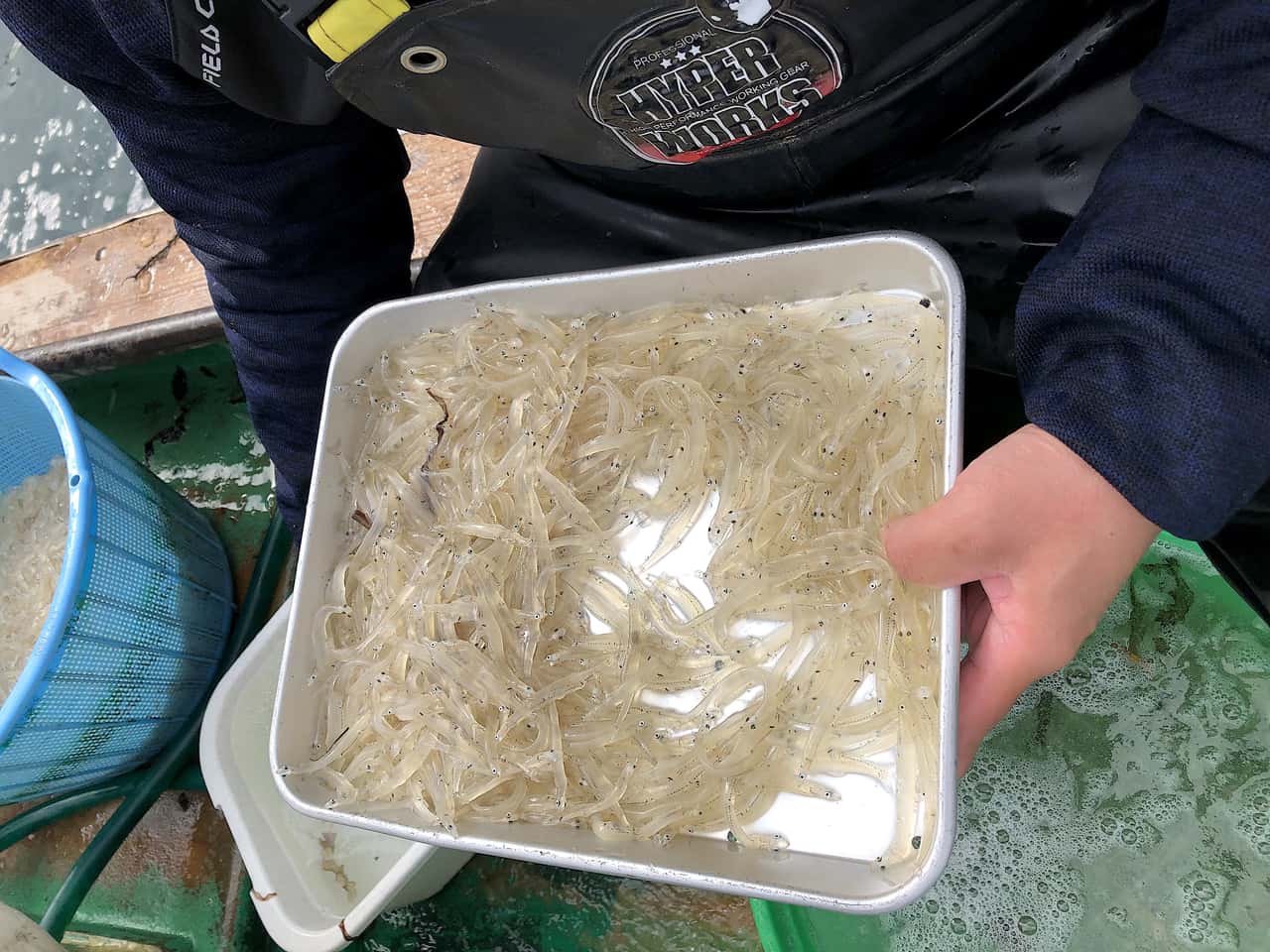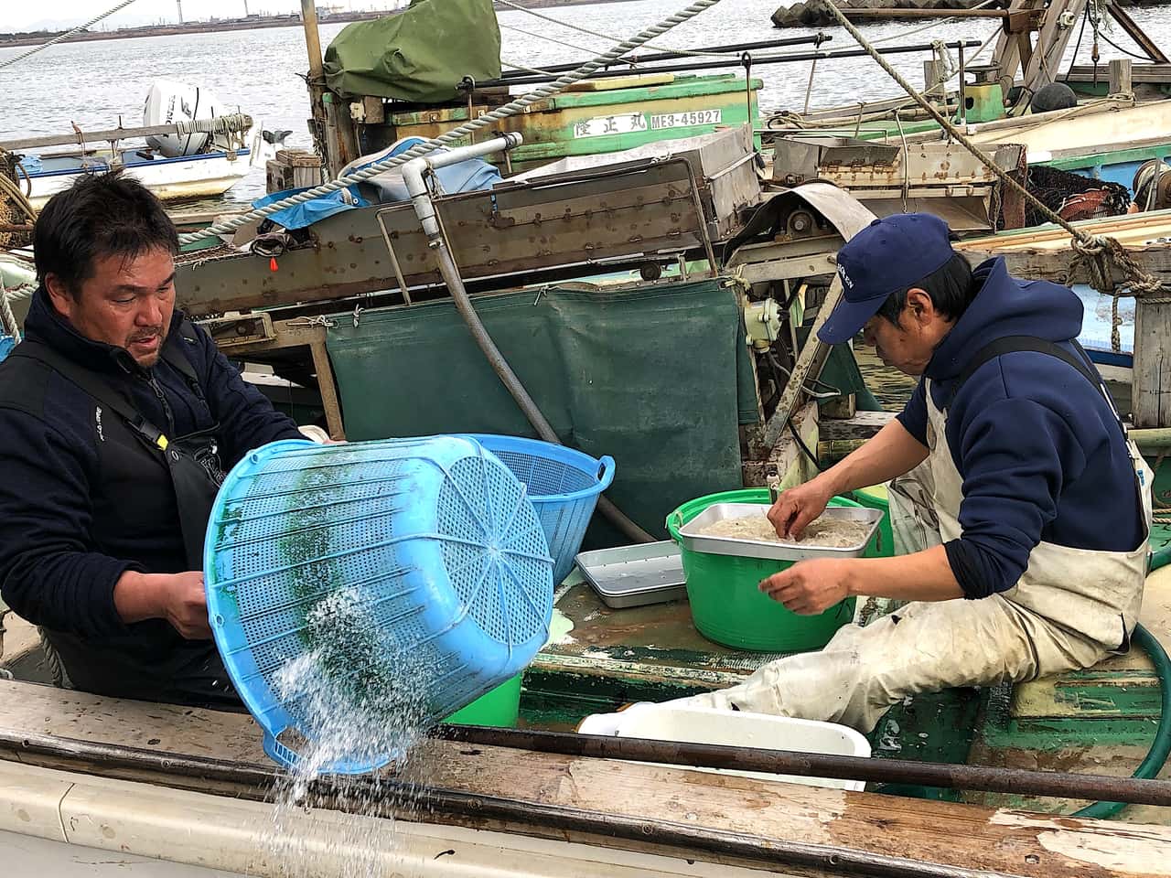 ニッポンさかな酒 白魚の春の空 文&写真:吉村喜彦 2022.3.4 吉村 喜彦(よしむら のぶひこ) 印刷する 桑名市の赤須賀漁港まだ春浅きころ。 とれたての白魚(しらうお)を食べた。 ところは桑名。※ 木曽川・長良川・揖斐川の大きな三つの河口域である。 木曽川・長良川・揖斐川の河口域漁港で白魚を選別する漁師たち透きとおった身体の白魚白魚はシラウオ科の回遊魚。大きくなっても体長10センチほど。 汽水域周辺に生息する半透明の細長い小魚だ。 生の白魚体は細長いが、頭から尾に向かって太くなり、尾びれの前でふたたび細くなる。 生きていると半透明で背骨や内臓が透けて見えるが、死ぬと白く濁った色になる。 目は小さく口は大きい。 透きとおった身体とこの胡麻のような目が白魚のシンボルのような気がする。 口に入れると、蕎麦や素麺を食べたときのようなするっとした食感があり、一噛みすると、ほのかな苦みが口のなかに広がる。 それは、フキノトウやワラビ、ゼンマイなど春の野草と通いあう爽やかな苦みだ。 * * * 江戸時代、隅田川の白魚漁は早春の風物詩だったそうだ。 いまでは考えられないが、それほど隅田川の水は清らかだったのだろう。 『守貞謾稿(もりさだまんこう)』という江戸時代後記(1837年)の百科事典には、「白魚は江戸隅田川の名物とす。細かき網をもってすくひとる。夜は篝(かがり)してこれを漁(すなど)る」としるされている。 早春、産卵のために隅田川にのぼってきた白魚を、夜、篝火(かがりび)をたいて集め、四つ手網(よつであみ)などでとったそうだ。 『魚鑑(うおかがみ)』という江戸時代(1831年)の本では白魚について、 「備前平江(岡山市を流れる旭川河口部の平井の間違いか)、伊勢桑名に多し。武蔵角田川および中川のものも桑名の種といへども、水美なれば魚もまた美なり。諺(ことわざ)にいふ、氏よりそだちなるべし」 と書かれている。 なんと、隅田川の白魚の種は、伊勢桑名のものだったというのである。 また、隅田川と中川の水が美しいから、桑名の白魚よりも江戸の方がいいという意味のことが述べられている。「氏より育ち」などと完璧な身びいきの叙述には、笑ってしまうが、とにかく、桑名の白魚と江戸の白魚は関連性があったのかもしれない。 一説には、白魚が大好物だった徳川家康が、桑名の白魚を隅田川に放したともいわれている。 スマートな体つきといい、あっさりとした味わいといい、いかにも江戸っ子好みの魚であることは確かだ。 * * * まずはそのまま何もつけずに口に入れる。 ほのかな塩味がいい。 二つの目の苦みが口中に凛々しい風をよぶ。 醤油とワサビをつけてもいいが、白魚そのもの、つまり春を味わうには、何もつけないのがお薦めだ。 白魚の釜茹でふっくらと卵でとじた「しらうお丼」合わせるお酒は、三重の酒「作(ざく) 奏乃智(かなでのとも)」 三重の酒「作(ざく) 奏乃智(かなでのとも)」こちらは初めて飲んだが、なんという美味しさだろう。 精米歩合50%。メロンのような甘やかな香り。 しかし酸もしっかりあって、キレがいい。 シャープな後味が素晴らしい。 淡々としたなかにも、酒としての生き方をしっかり持っている。 白魚の透きとおった真っ直ぐな生き方に通じているようだ。 桑名には上馬(あげうま)というクラフトビールもあったので、それも合わせた。 ドイツ直輸入の有機無農薬麦芽100%で、養老山系の天然水で仕込んだオーガニック・ビール。 クラフトビール「上馬(あげうま)」自然なビタースイートと白魚の苦みは、いいマリアージュだ。 * * * 白魚の黒目の二粒ずつあはれ 福永耕二 白魚の水より淡く掬はるる 田畑美穂女 水揚げされるとすぐ死んでしまう白魚のはかなさは、日本人の美意識にかなっているのかもしれない。 いのちのかなしさを見る春。 空と海をながめ、白魚の味を深くかみしめる。 文&写真:吉村喜彦 ※編集部注釈 桑名=三重県桑名市 東海酒漁師吉村 喜彦(よしむら のぶひこ)1954年大阪生まれ。京都大学教育学部卒業。サントリー宣伝部勤務を経て作家に。 著書に、小説『バー堂島』『バー・リバーサイド』『二子玉川物語』『酒の神さま』(ハルキ文庫) 『ビア・ボーイ』『こぼん』(新潮社、PHP文芸文庫)『ウイスキー・ボーイ』(PHP文芸文庫) ノンフィクションでは、『漁師になろうよ』『リキュール&スピリッツ通の本』(ともに小学館) 『マスター。ウイスキーください〜日本列島バーの旅』(コモンズ)『オキナワ海人日和』(三省堂) 『食べる、飲む、聞く 〜沖縄・美味の島』(光文社新書)『ヤポネシアちゃんぷるー』(アスペクト)など多数。 NHK-FMの人気番組「音楽遊覧飛行〜食と音楽でめぐる地球の旅」の構成・選曲・DJを長年つとめた。 現在、月刊「地域人」で全国の漁師を取材する「港町ブルース」を連載中。このライターの記事をもっと読む
