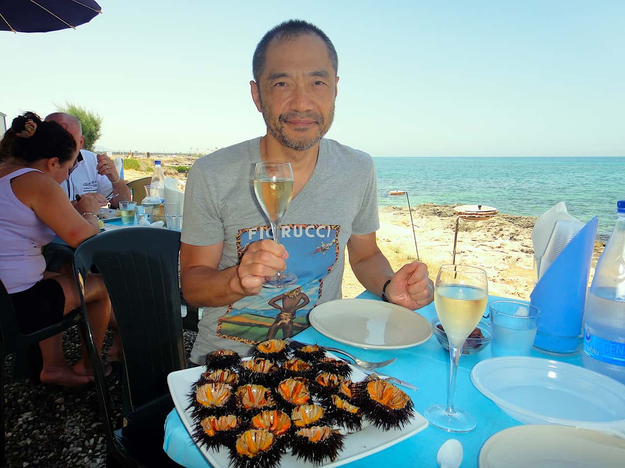 ニッポンさかな酒 逗子の、爽やかキャベツウニ 文&写真:吉村喜彦 2021.7.15 吉村 喜彦(よしむら のぶひこ) 印刷する 小坪漁港梅雨の晴れ間の一日。 逗子市の小坪漁協に、キャベツウニの取材に行った。 キャベツウニとは、キャベツを餌として、陸上養殖をしたウニのことである。 鎌倉から逗子のまちに入ると、空気が一変する。光の量が増えて、空気がやわらかくなったような気がする。 逗子マリーナの丈高い椰子並木逗子マリーナの丈高い椰子並木を通り、小坪漁港に着く。 その一角でキャベツウニは養殖されているのだ。 * * * 小坪漁協のキャベツウニキャベツウニの養殖は3月から6月末までの三カ月間。 昨年、初出荷をして好評を博し、今年は養殖の個体数も増やしたという。 ウニの種類は、ムラサキウニ。 春。海で採ってきたウニを水槽に入れ、できるだけウニ一個一個にキャベツを与えるようにと、丹精込めて育てている。 小坪(に限らず相模湾一帯)はこの10年ほど、磯焼けがひどいそうだ。 温暖化によって、南の魚アイゴが居すわり、海藻を食べてしまう。 そうすると海藻を食べるウニの中身は、空っぽになっている。 漁師たちはそんなウニを駆除してきたのだが、いくらやっても徒労感がぬぐいきれなかった。陸に揚げたウニの利用価値はなかったのだ。 そんなとき、神奈川県水産技術センターから、キャベツを餌にしてウニの養殖をすると、身入りもいい美味しいものになるという情報を得た。 小坪漁協では、新しい取り組みに意欲的な漁師が多く、さっそく2020年の春から養殖をスタート。 それがメディアにもたびたび取り上げられ、小坪のキャベツウニは有名になっていった。 * * * 小坪のキャベツウニは、甘くて、磯くさくない。ウニをキャベツで育てると、甘みのもと=グリシンが増え、苦みのもと=バリンが減ると神奈川県水産技術センターは発表している。 いったいどんな味なんだろう? 話を聞けば聞くほど、食べたくなってくる。 2日連続の水揚げを終えた翌日。 漁師の座間太一さんが逗子駅近くでやっているトラットリア「ラ・ヴェルデ」で、ウニのスパゲティを食べさせてもらうことになった。 座間さんは調理学校卒業後、イタリアで8年修業をして帰ってきた。 自分の好きな魚は自分で獲りたいと逗子の漁師になったそうだ。 そういう好奇心と行動力、人柄のあかるさが、じつはプロジェクトを前進させる大きなパワーになっている。座間さんはキャベツ・ウニ作戦の中心的人物である。 * * * 南イタリア・プーリアの白ワイン「ロコロトンド」と「キャベツウニのスパゲティ」「ラ・ヴェルデ」は逗子駅から歩いてすぐのところにある。逗子インターからも車で10分弱。 広くて明るい店内は、まるで南イタリアの海辺にいるようだ。 しばし、待って、「キャベツウニのスパゲティ」(2500円)がドーンと登場。 ニンニク、アンチョビー、鷹の爪、そして、たっぷりのオリーブオイルのみ。じつにシンプルな一品だ。 お皿からは、美味しそうなニンニクの香りがふわーっと漂ってくる。 ひとくち頬ばる。 ウニがスパゲティにとろっと絡まり、厚みのあるうま味と上品な甘さが口いっぱいにひろがった。 はじめ重厚に感じた味わいは、たちまちすっと一変し、おだやかな光の射す海の風景が広がる。軽やかな風のような甘みになった。苦みやえぐみ、磯臭さはまったくない。 「いままでウニが苦手だったひとも食べてくださるんですよ」 座間さんが微笑む。 合わせたワインは、南イタリア・長靴のかかと=プーリア地方の白ワイン「ロコロトンド」。 9年前、プーリアのリストランテにてイタリアで食べた、ヨーロッパ・ムラサキウニ9年前にいちどプーリアに行ったことがある。ちょうどウニの解禁日で、浜辺のリストランテで食べたのだった。ヨーロッパ・ムラサキウニというのだろうか、ひじょうに入り身が少なくて驚いた。だから、みんな何個も何個も味わっていた。 ロコロトンドの液体は、透きとおった麦わら色に輝いている。 スパゲティのあとに、ひとくち。 柑橘系のフルーツのような香りとともに、 爽やかな酸味が舌をそよがせる。 ウニのクリームがさっと洗われ、心地よい海の香りがほのかに立った。 小坪の海のあかるい陽光が、ふたたび身体によみがえってくる。 キャベツウニの成功は、小坪のひとたちの大らかで開放的な人柄が、きっと導いたものにちがいない。 ウニを食べながら、あらためて、そう思った。 文&写真:吉村喜彦 漁協(JF)酒漁師吉村 喜彦(よしむら のぶひこ)1954年大阪生まれ。京都大学教育学部卒業。サントリー宣伝部勤務を経て作家に。 著書に、小説『バー堂島』『バー・リバーサイド』『二子玉川物語』『酒の神さま』(ハルキ文庫) 『ビア・ボーイ』『こぼん』(新潮社、PHP文芸文庫)『ウイスキー・ボーイ』(PHP文芸文庫) ノンフィクションでは、『漁師になろうよ』『リキュール&スピリッツ通の本』(ともに小学館) 『マスター。ウイスキーください〜日本列島バー