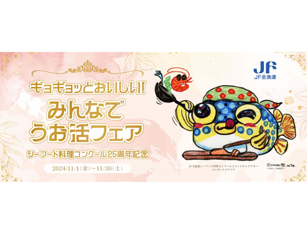 【シーフード料理コンクール25周年記念】歴代受賞レシピのアレンジ料理が都内9飲食店で食べられる「ギョギョッとおいしい!みんなで魚活フェア」開催(11月末まで)今年で25回目を迎えるJF全漁連主催の「シーフード料理コンクール」。 同コンクールの歴代受賞料理の中から厳選したレシピをベースに、東京都内の飲食店9店舗がメニュー化する「ギョギョッとおいしい!みんなで2024.11.8JFレポートJF全漁連編集部