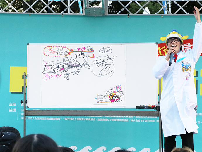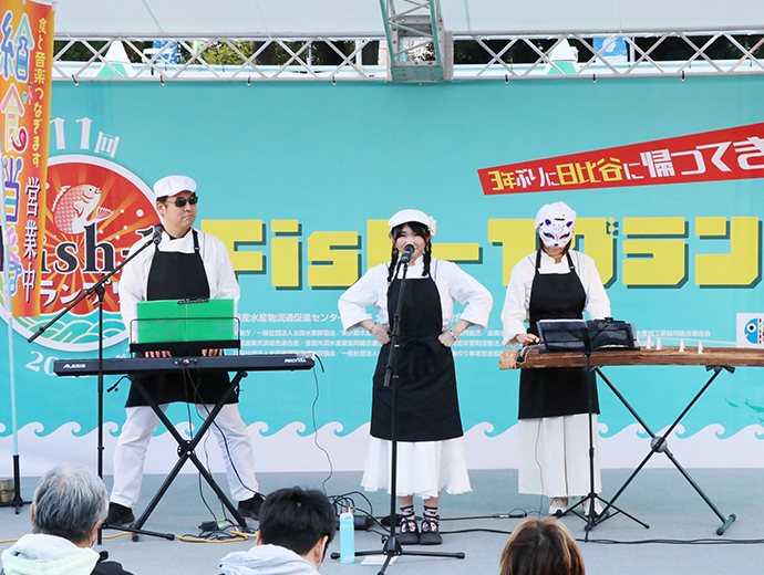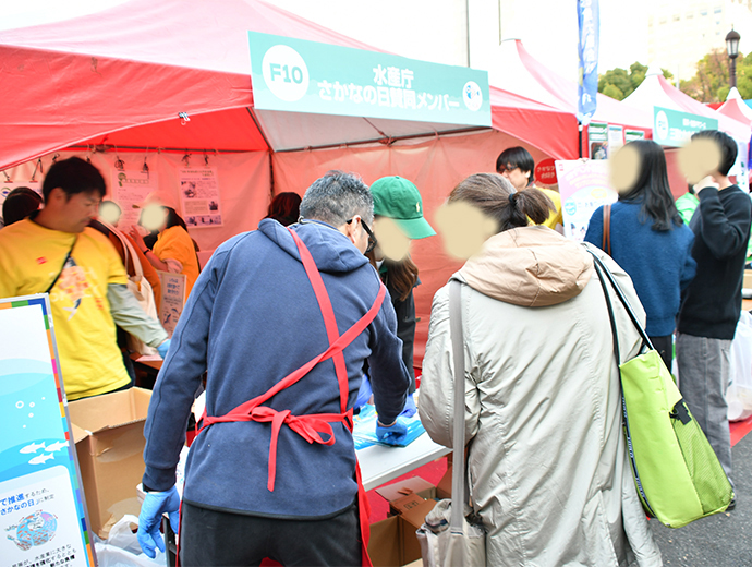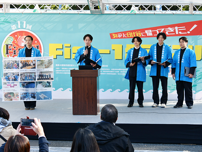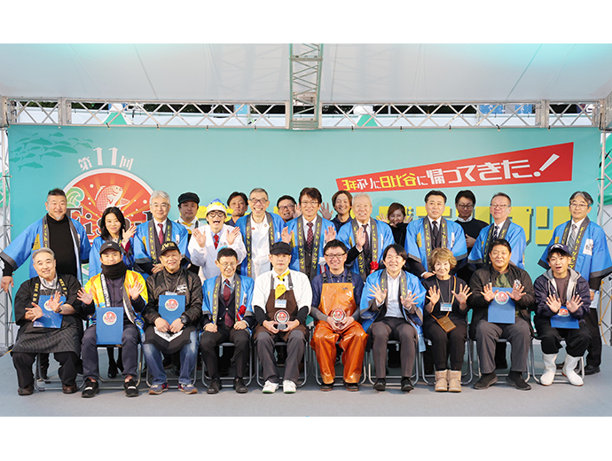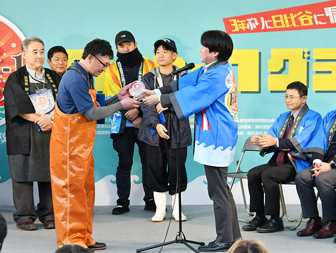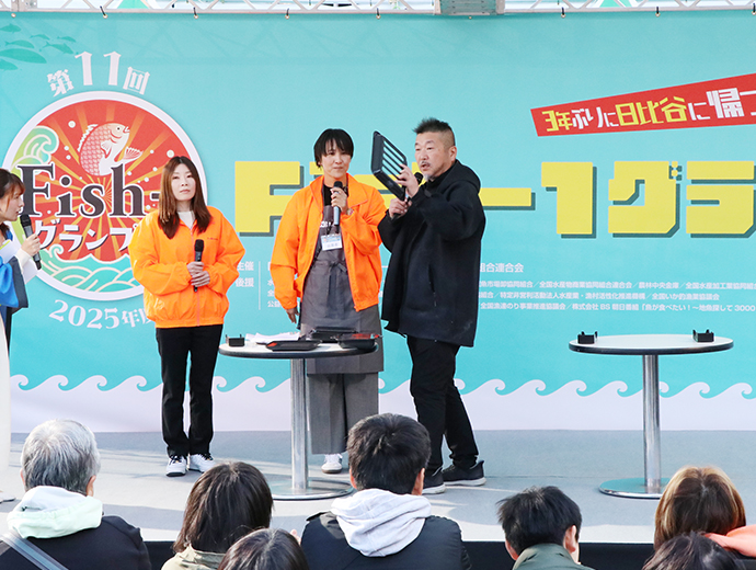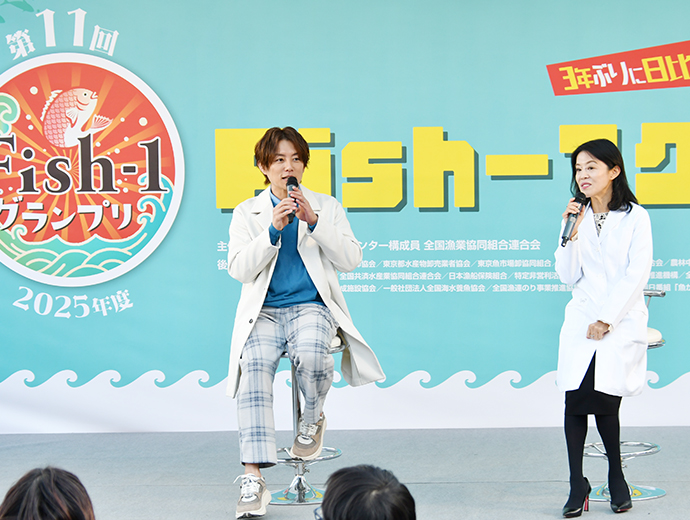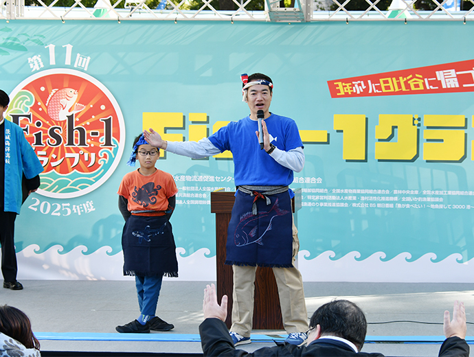 JFレポート 第11回Fish-1グランプリ 3年ぶりに日比谷公園で開催! 2025.12.19 JF全漁連編集部 印刷する 2013年度から開催している「日本の水産物に光を当てる魚の祭典」である「Fish-1グランプリ」。 11回目となる本年度は、日本最大級の魚介グルメフェスティバルである「SAKANA & JAPAN FESTIVAL(魚ジャパンフェス)2025 in 日比谷公園」(主催:魚ジャパンフェス実行委員会、会期:11月28~30日の3日間)との同時開催で、最終日の11月30日(日)に実施。リニューアルにより生まれ変わった日比谷公園での開催は2022年11月以来3年ぶりとなります。 オープニングセレモニーで主催者挨拶をする坂本雅信JF全漁連会長と来賓の林芳正総務大臣、船橋利実自民党水産部会長(写真左から)魚料理を求めて長蛇の列ができました投票所で投票する来場者グランプリは「漁師が丸ごと包んだ!海の幸ごちそうタコス」Fish-1グランプリでは、漁師自慢の魚≪プライドフィッシュ≫や低・未利用魚をはじめとする国産水産物やその商品を使用した「国産水産物料理コンテスト」が行われました。全国各地の漁師やJFなど33団体の応募の中から書類審査を勝ち抜いた8団体が料理をつくり、来場者と審査員による投票の結果、JFみやぎ/戸倉Sea Boysの「漁師が丸ごと包んだ!海の幸ごちそうタコス」がグランプリに選ばれました。 JFみやぎ/戸倉Sea Boysのグランプリ受賞は2年連続の快挙です。 山下雄平農林水産副大臣からグランプリのトロフィーを受け取る戸倉Sea Boysグランプリを受賞したJFみやぎ/戸倉Sea Boys「漁師が丸ごと包んだ!海の幸ごちそうタコス」参加者と審査委員による記念撮影ステージイベントで会場は大盛り上がりステージでは、トークショーなどさまざまな企画が行われました。 JF全漁連魚食普及推進委員のさかなクンによるステージでは、さまざまな魚を大きな模造紙に描く「55(ギョじゅうギョ)秒チャレンジ」トークショーが行われました。 解答したお子さんにはステージ上で描かれた魚のイラストが、名前&さかなクンのサイン入りでプレゼントされ、会場は大いに盛り上がりました。 さかなクンによるトークショー俳優・タレントの杉浦太陽さんとFish-1グランプリ審査委員の馬渕知子医師によるトークショーも行われました。 トークショーでは、趣味が釣りで、魚好きの杉浦太陽さんが馬渕医師と魚食のメリットなどについてトークしました。 馬渕知子医師と杉浦太陽さんのトークショーこのほか、「水産海洋高校生による取組発表+魚食普及㏚ステージ」や、Fish-1グランプリ審査委員の上田勝彦さんと(一社)日本ガス石油機器工業会によるガスコンロを使った簡単な魚料理の紹介、日本の第一次産業を全力応援する音楽ユニット「給食当番」によるミニライブ、「サザエさん・マスオさん×水産庁『さかなの日』コラボステージ」も行われました。 水産海洋高校生による取組発表魚食普及㏚ステージ上田勝彦さんと(一社)日本ガス石油機器工業会によるガスコンロを使った簡単魚料理の紹介音楽ユニット「給食当番」によるミニライブサザエさん・マスオさん×水産庁『さかなの日』コラボステージにもさかなクンが登場ブースでは旬の魚料理などを販売会場では、コンテストへの出品料理のほか、JF福島漁連が常磐もののメヒカリとアンコウのフライを、三陸わかめ共販推進委員会が「三陸わかめスープ」を、全国の若手漁師たちが「オオズワイガニのカニ汁」を販売しました。来場者たちは、お目当ての魚料理を求めて、さまざまなブースを巡りました。 JF福島漁連ブース三陸わかめ共販推進委員会ブースJF全国漁青連ブースキッズコーナーでは、貝殻お絵描きや手ごね石けん作りのほか、魚に触ることができる「鮮魚タッチ」を設置し、長蛇の列ができていました。 このほか、水産庁×「さかなの日」賛同メンバーの展示ブースや(一社)日本ガス石油機器工業会によるガスグリルを活用した干物の試食提供なども行われました。 貝殻お絵描きブース手ごね石けん体験ブース水産庁×「さかなの日」賛同メンバーの展示ブース(一社)日本ガス石油機器工業会によるガスグリルを活用した干物の試食提供会場視察する林総務大臣と船橋自民党水産部会長会場視察する山下農林水産副大臣▶「国産水産物料理コンテスト」各賞の結果速報など、公式情報はこちら 「第11回Fish-1グランプリ Webサイト」 レシピ食育JF全漁連漁協(JF)漁師プライドフィッシュ祭りイベントさかなクンJF全漁連編集部漁師の団体JF(漁業協同組合)の全国組織として、日本各地のかっこいい漁師、漁村で働く人々、美味しいお魚を皆様にご紹介します。 地域産業としての成功事例や、地域リーダーの言葉から、ビジネスにも役立つ話題も提供します。 SakanadiaFacebookこのライターの記事をもっと読む