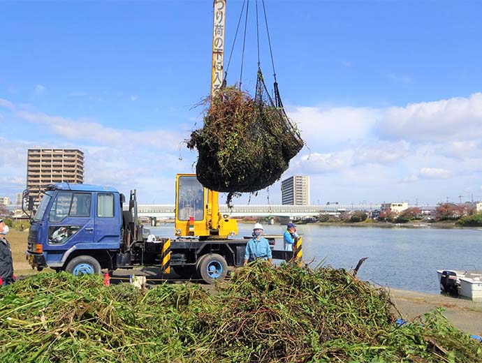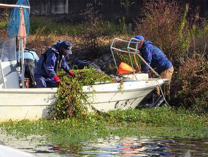 水産業の新戦略 琵琶湖の特産品「セタシジミ」の復活を願って ~JF瀬田町による外来種水草駆除の取り組み~ 2023.1.6 古江晋也(ふるえ しんや) 印刷する 瀬田川で漁獲された「セタシジミ」琵琶湖の特産品「セタシジミ」の現状琵琶湖と淀川をつなぐ瀬田川では1950年代から60年代にかけて「セタシジミ」がたくさん獲れました。セタシジミは琵琶湖水系にのみ生息する固有種であり、琵琶湖の特産品です。 漁業者によると「瀬田川に足を入れると、セタシジミがいつも足に触れた」そうです。また当時は多くの女性がシジミの入った風呂敷包みを背負い、京都・大阪方面でシジミの行商を行っていました。 セタシジミは他のシジミよりも「うま味が強い」といわれ、また、肝臓の妙薬として二日酔いや疲れた時は特に好んで食べられました。 しかし、琵琶湖大橋(1964年)や近江大橋(1974年)が開通し、70年代前半から大琵琶湖総合開発が始まるようになると、シジミの漁獲量は減少の一途をたどるようになりました。また、近年では、繁殖力の強い外来種の水草が繁茂するようになり、これらの水草が根から切れ湖底で腐敗し、ヘドロ化すると、シジミを含むさまざまな生物が生育できなくなくなるという懸念も高まっています。 こうした逆境の中、瀬田町漁業協同組合(以下、JF瀬田町)をはじめとする多くの人々が力を合わせ、外来種水草駆除活動を行っています。 伝統漁法で漁獲するセタシジミ漁滋賀県大津市瀬田地区に本所があるJF瀬田町の組合員は、伝統漁法である手掻きでセタシジミを漁獲しています。手掻きとは、7~8mの竹竿の先に網を取り付けた漁具であり、船縁を支点としたテコの原理によって船上から湖底を掻き、貝類を漁獲する漁法です。 手掻きに使用する漁具出港は早朝5時であり、1~2時間ほど操業します。90年代後半は1回の漁で5㎏ほどが漁獲できたそうですが、現在は2㎏も獲れません。また一回すくっても2つ、3つのシジミしか獲れないことが多い状況です。 漁獲したシジミはふるいにかけ、殻長が2㎝以下のシジミは再放流します。セタシジミを漁獲すると、漁業者は「ゴロ選り」と言ってシジミ同士を当て、反響音に耳を澄まします。この時、生きているシジミは「カチカチ」という音がしますが、死んでいるシジミは「カラカラ」という音がします。そのためカラカラと音がしたシジミは取り除きます。 セタシジミの不漁に加え、燃油価格が高騰していることから出漁する組合員は減少しています。ただ伝統漁法を守り続けることと、手掻きが「湖底耕耘」の役割があることから可能な限り漁に出る組合員もいます。 漁獲したセタシジミはJF瀬田町本所で販売します。地元の料亭やなじみの個人が購入しますが、常に店頭にあるとは限りません。そこで事前に予約を受け、販売できる量が漁獲できた時に連絡するとともに、本所には「本日シジミあります」という看板を掲げます。 一方、伝統漁法を多くの人々に知ってもらうための取り組みとしては、手掻き漁法体験を実施しています。また、組合にはかつて使用していたさまざまな漁具を展示保管しており、小学生などに漁具などを説明することで琵琶湖の漁業への理解を深めています。 セタシジミが減少した理由は?滋賀県大津市瀬田地区は、琵琶湖水系の中でもシジミがよく獲れる地域でした。JF瀬田町組合長の𠮷田守氏によると、1960年代頃まではセタシジミという名称はなく、「琵琶湖・瀬田川で獲れるシジミ」だったそうです。 JF瀬田町組合長の𠮷田守氏当時の子どもたちは学校から帰るとバケツを持ってシジミを獲り、シジミ御飯、ヌタ、みそ汁、すまし汁などにして食べていました。1950年代後半には滋賀県で年間5,000トンほど漁獲されたセタシジミですが、2019年には41トンにまで減少するようになりました。 ▶資料はこちら この理由について𠮷田氏は、①セタシジミのエサとなる植物性プランクトンの減少、②瀬田川の流れ、➂琵琶湖総合開発による瀬田川の浚渫(しゅんせつ)※1などの要因を指摘します。 ※1 浚渫(しゅんせつ):川底の土砂やヘドロを取り除くこと 具体的には、セタシジミは植物性プランクトンのケイソウを食べて成長しますが、そのケイソウは、他の種類の藻類(そうるい)が増加すると減少する傾向にあります。他の種類の藻類は、瀬田川に澱みがみられるようになると増加するため、瀬田川洗堰(あらいぜき)※2の水門の操作に大きな影響を受けます。つまり、瀬田川の流れの状況がエサとなるケイソウの増減を左右します。 ※2 瀬田川洗堰(あらいぜき):大雨で琵琶湖の水の量が多いときにはたくさんの水を流し、雨が少なく水の量が少なくなると無駄な水を流さない。琵琶湖の水の出口である瀬田川の流量をコントロールし、琵琶湖の水位と下流の水の量を調節している 瀬田川洗堰また、夏場に瀬田川の流水量が低下すると、セタシジミが生息するには厳しい水温となります。そこでセタシジミは水温が上昇すると砂に潜ることで