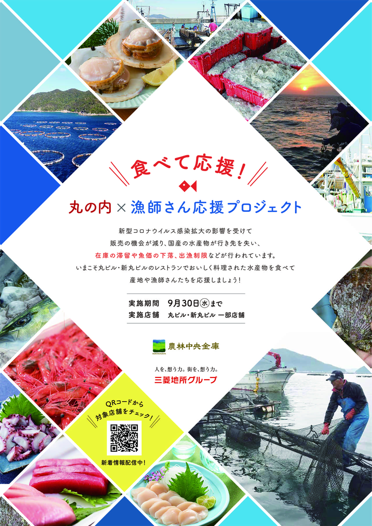 JFレポート 食べて応援!丸の内×漁師さん応援プロジェクト開催 2020.8.28 JF全漁連編集部 印刷する 東京・大丸有を舞台に生産者支援東京の大手町・丸の内・有楽町地区(以下、大丸有)を舞台に、SDGs(持続可能な開発目標)達成に向けたさまざまな活動を行う「大丸有 SDGs ACT5」。 この取り組みの一環として、9月30日(水)まで開催している「食べて応援!丸の内×漁師さん応援プロジェクト」に、JF全漁連は全国の魚介類を産直通販サイト「JFおさかなマルシェ ギョギョいち」の商品を提供しています。 このプロジェクトは、新型コロナウイルス感染拡大の影響を受けて、販売の機会が減り、行き場を失った水産物を丸ビル・新丸ビルのレストラン等で取り扱うことで、生産者を応援するものです。 以下は、プライドフィッシュ公式ホームページより転載。 JF全漁連は産直通販サイト「ギョギョいち」の商品提供現在、東京丸ビル・新丸ビルの一部店舗で、プライドフィッシュ等の地魚を使った料理が食べられるキャンペーンを9月30日(水)まで開催しております。 このキャンペーンは、新型コロナウイルス感染拡大の影響を受けて、産地在庫の滞留や魚価の下落、出漁制限など産地で困っている漁師さんを、水産物を食べて応援しようと農林中央金庫や三菱地所他が展開している「大丸有×SDGs ACT5 」の取り組みの一つとして開催されているものです。 料理に使用される水産物は通販サイト「JFおさかなマルシェ ギョギョいち 」で販売されている商品を各レストランのシェフが腕によりをかけて調理し、提供します。 提供店舗やメニューの詳細については「食べて応援!丸の内×漁師さん応援プロジェクト」サイトにて紹介されておりますので、ご覧ください。 漁師とシェフ自慢の料理を是非ご賞味ください。 ※提供店舗やメニューが変更になる場合がございますので、最新情報は同プロジェクトサイトよりご確認ください。 ▶産直通販サイト「ギョギョいち」はこちら ▶旬のお魚検索「プライドフィッシュ」公式サイトはこちら 通販ギョギョいちSDGsプライドフィッシュJF全漁連編集部漁師の団体JF(漁業協同組合)の全国組織として、日本各地のかっこいい漁師、漁村で働く人々、美味しいお魚を皆様にご紹介します。 地域産業としての成功事例や、地域リーダーの言葉から、ビジネスにも役立つ話題も提供します。 SakanadiaFacebookこのライターの記事をもっと読む