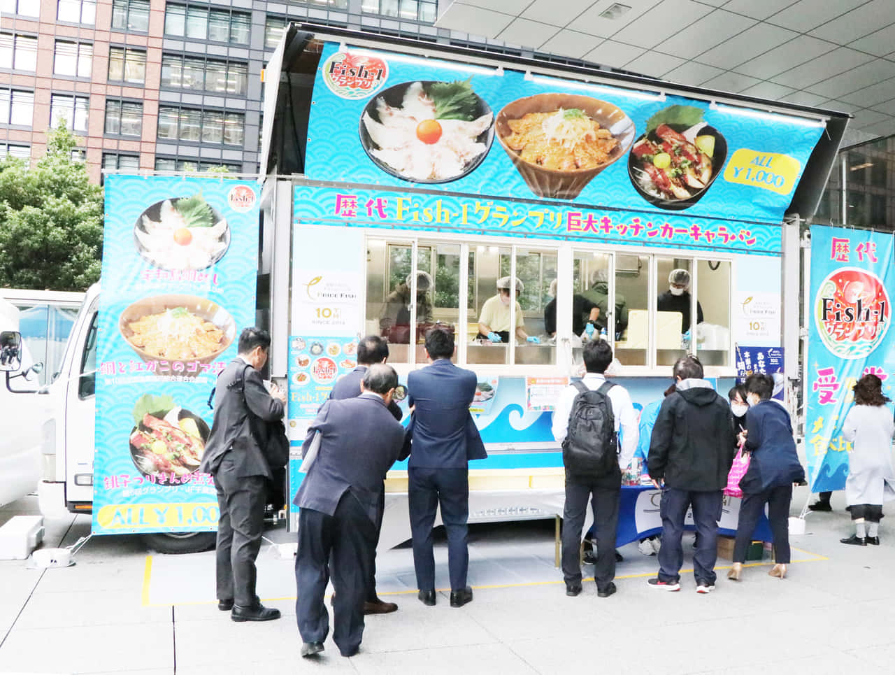 JFレポート 歴代Fish-1グランプリの入賞作品が味わえる! 巨大キッチンカーキャラバンが都内を巡回(11/4まで) 2024.10.30 JF全漁連編集部 印刷する JF全漁連が2013年度から開催している国産水産物に光を当てる「魚の祭典」である「Fish-1グランプリ」。 その中で開かれる、プライドフィッシュなどの国産水産物を使った魚料理コンテストの歴代受賞メニューから厳選した3メニューを販売する巨大キッチンカーが11月4日(月・振休)まで都内を巡ります(主催:産経新聞社)。 都内を巡る巨大キッチンカー販売される3メニューは、「宇和島鯛めし」(JFえひめ、第4回準グランプリ)、「鯛と紅ガニのゴマ漬け丼」(JF兵庫漁連、第9回JF全漁連会長賞)、「銚子つりきんめ煮炙り丼」(JF千葉漁連、第6回グランプリ)。それぞれ1,000円(税込)で販売します。 販売される「鯛と紅ガニのゴマ漬け丼」、「宇和島鯛めし」、「銚子つりきんめ煮炙り丼」(写真上から時計回り)大手町のサンケイビル前広場(10月29日)を皮切りに、新宿の歌舞伎町シネシティ広場(10月30日)、池袋の中池袋公園(10月31日)をめぐり、11月1~4日はお台場青海地区特設会場で開かれる「SAKANA & JAPAN FESTIVAL(魚ジャパンフェス)2024 in お台場」内に出店します。 このうち11月4日(月・振休)には、JF全漁連が「第10回Fish-1グランプリ」を同会場内で開催します。 初日は1時間半で、約250食を完売初日(10月29日)は、「巨大キッチンカーキャラバン」出陣式が東京サンケイビル前広場で開催され、産経新聞社メディアビジネス局の小塩史人上級専門委員と千田耕平次長、JF全漁連の西岡貴志輸出・直販事業部長がテープカットを行いました。 出陣式でのテープカット。左から小塩上級専門委員、西岡部長、千田次長その後、午前11時から販売開始。1時間半で、約250食が完売しました。 これを機会に、国産水産物の美味しさを堪能してください。 JF全漁連編集部漁師の団体JF(漁業協同組合)の全国組織として、日本各地のかっこいい漁師、漁村で働く人々、美味しいお魚を皆様にご紹介します。 地域産業としての成功事例や、地域リーダーの言葉から、ビジネスにも役立つ話題も提供します。 SakanadiaFacebookこのライターの記事をもっと読む