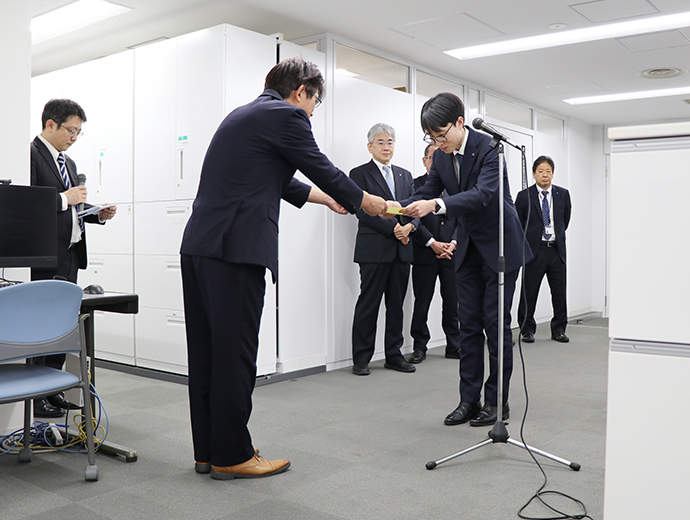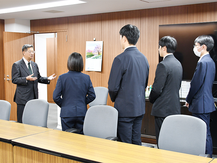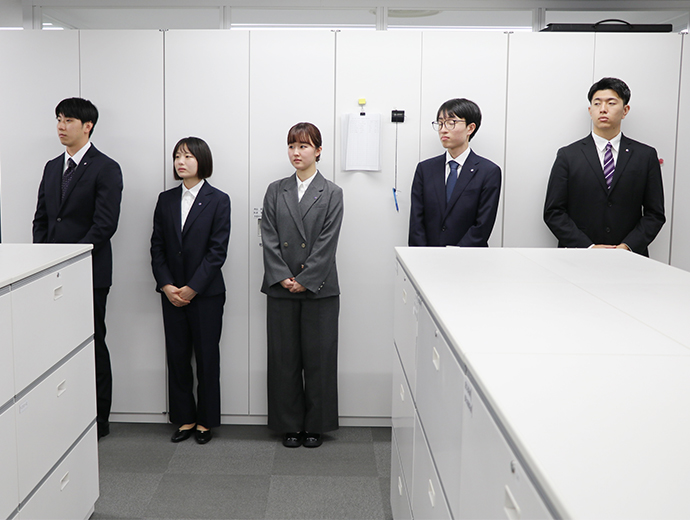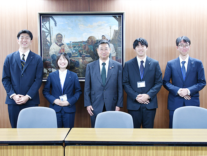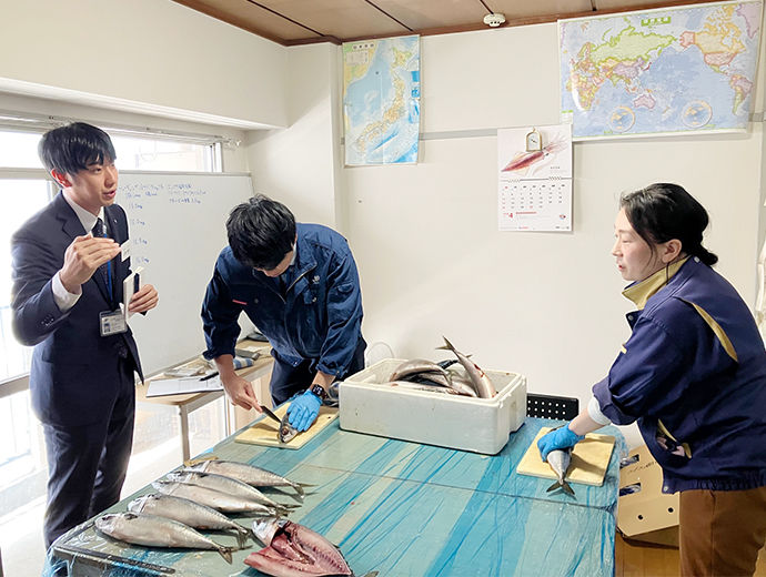 JFレポート JF全漁連に5人のフレッシャーズが加わりました! 2026.4.27 JF全漁連編集部 印刷する こんにちは、Sakanadia編集部です。 全国各地で初夏の兆しが見え始めてきたこの時期。4月から新社会人としてスタートした人たちは、期待と不安を抱えながら忙しい日々を過ごしているのではないでしょうか? JF全漁連では今年、新たに5人の仲間が加わり、既に配属先(信用・組織事業部1人、購買事業部2人(うち石油第一課海外担当1人、石油第二課1人)、販売事業部制度餌料課1人、輸出・直販事業部船橋事業所1人)で奮闘する毎日を送っています。 今回は、JF全漁連新入職員の約1か月の歩みをご紹介します。 4月1日に入会、社会人生活がスタート4月1日に開催された「入会式」。 JF全漁連のオフィスで、多くの先輩役職員に見守られながら行われました。 新入職員5人は、内田珠一専務から送られた歓迎と期待のメッセージを胸に刻み、社会人として、JF全漁連の職員としての第1歩を踏み出しました。 5人の新入職員たち内田専務から辞令を受け取る座学と実地による研修を受講新入職員5人は入会後、約3週間にわたって「新人研修」を受けました。 最初はビジネスマナーやJF全漁連の各事業の内容など、職員として必要な土台となる部分を座学で学びました。 JF全漁連の業務内容は多岐にわたるため、各事業部の部門長が直々に時間をかけて、丁寧に説明を行いました。 事業部門長による業務内容の説明に耳を傾ける新入職員座学での研修のほかにも、販売事業部の実際の業務現場や燃料油等の調査・研究を行う油質研究所の見学、全国のJFグループの新人職員が一堂に会して行われる合同研修など、横断的な研修に参加しました。 販売事業部の業務現場を見学油質研究所を見学このほか、新入職員5人は青森県八戸市を訪問。 市場のセリ見学やJF全漁連の子会社である「ぜんぎょれん八戸食品」での水産加工実習に参加したほか、JF全漁連八戸油槽所のタンク施設を見学し、漁船用燃料油(A重油)のタンクへの入出荷と漁船への積み込みの仕組みなどについて現地で研修を行いました。 青森県八戸市内の水産市場を見学JF全漁連八戸油槽所のタンク施設を見学現地研修を終えた後、新入職員5人は協力して研修結果を資料にとりまとめ、4月21日の研修最終日に総合管理部への研修報告会を行いました。 * * * JF全漁連の事業内容についてはこちらから。 ▶JFにまつわるQ&A「JF全漁連の活動について」 坂本会長と面会し、将来の意気込みを語るまた、勤務後に行われた坂本雅信会長との面会では、参加した新入職員らが緊張した面持ちで出身や配属先などの自己紹介を行うとともに、将来に向けての意気込みを語りました。 坂本会長からは、「JF全漁連は風通しの良い職場。しっかり力をつけて活躍してほしい」とのお言葉をいただきました。 坂本会長と面会新入職員は、「次世代の子供たちにより豊かな海を引き継いでいきたい」、「漁業者を支えるような仕事がしたい」、「魚食文化を守り、次世代に繋げていきたい」などの熱い想いを持って、入会してきました。 我々編集部も新入職員たちがこれらの想いを実現できるように各部署で活躍してくれることを期待しています。 皆さんも新入職員5人の今後の活躍、成長を温かく見守っていただければと思います。 * * * JF全漁連では、2027年度新卒採用のエントリーをお待ちしております。 お申し込みの方はこちらから。 JF全漁連若手JF全漁連編集部漁師の団体JF(漁業協同組合)の全国組織として、日本各地のかっこいい漁師、漁村で働く人々、美味しいお魚を皆様にご紹介します。 地域産業としての成功事例や、地域リーダーの言葉から、ビジネスにも役立つ話題も提供します。 SakanadiaFacebookこのライターの記事をもっと読む