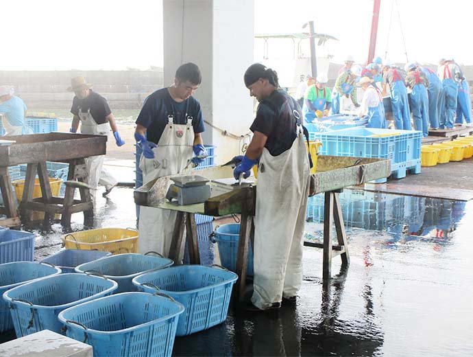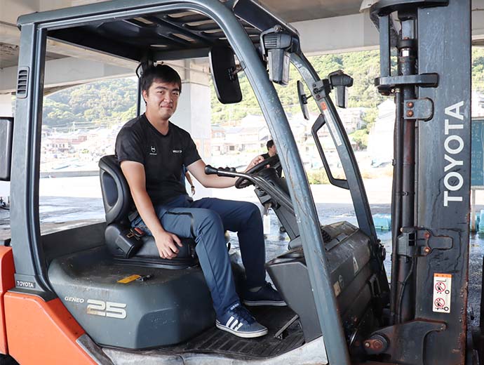 漁師と働くひとたち 船長に憧れた少年がJF東安房の職員になって目指すもの 2024.10.10 JF全漁連編集部 印刷する 千葉県南房総市にある東安房漁業協同組合(JF東安房)で、水揚げ業務から入札、漁船への給油など、幅広い業務をこなす山口知也さん。幼い頃から父親が船に乗り働く姿に憧れていたが、とある事情で「漁協で働く」というに新たな目標を見出し、全国漁業協同組合学校(以下、組合学校)に入学。そこで専門的な知識・資格を取得し、卒業後は、漁協職員として日々奮闘している。 船に乗る父への憧れが導いた進路山口さんが生まれ育った千葉県南房総市の千倉地区は、昔から漁業が盛んな漁師町で、自宅からは太平洋を望むことができる。幼い頃から野球が好きで、近所の友達とキャッチボールをするのが日課だった。父親はタグボートの船長として働いており、その仕事は入港船をロープで牽引し、船首で押すなどして安全に離着岸させることだ。「自分もいつかは、父のように船に乗る仕事がしたい」、と思っていた。 そんな思いを抱き、高校は水産系の学科がある高校に進学。進路を決める時期になり、「父のような船に乗る仕事」にチャレンジしようとしたものの、船に乗るために必要な、ある検査項目で、断念せざるを得ないことが判明してしまった。ダメなら次に自分はどうすべきか、担任に相談をしたところ、千葉県柏市にある組合学校を勧められた。高校で勉強してきたことを活かし、地元に貢献しつつ、船に関わる仕事もできる「漁協」で働くことを考え始めた。「よし、やってみるか」と高まった意欲は、卒業後、地元のJF東安房で働く意思表示を周囲に示すほどで、新たな学びの場に進むことを決めた。 全国漁業協同組合学校で漁協の仕事を学ぶ2021年4月、晴れて組合学校に入学。全国各地から集まった13人の仲間と寮生活をしながら、1年間の学校生活が始まった。 上段左から2番目が山口さん(入学式にて)学校生活を振り返ってみると「勉強が難しかった」。組合学校では「協同組合論」や「経済学基礎」、「漁業法」、「漁協簿記」、「水産物マーケティング」などの科目をとおし、漁協職員に必要な知識を幅広く学ぶことができる。漁協職員に必要な知識を幅広く専門的に学ぶとして、履修する。また、知識だけでなく、フォークリフトや船舶、危険物取扱の技術系免許も取得可能だ。 クラスは本当に面白い人たちの集まりだった。寮生活では共同風呂の排水溝を詰まらせた人がいて、廊下まで水浸しになり、皆で必死になって排出作業をやった珍事件もあった。 当時の出来事をよく覚えていると笑って話す職員の田邉彩さん。組合学校で寮母さん的な役割も担っていた人だ。山口さんについて、「とても優しく、勉強も毎日コツコツ取り組む学生だった。少しシャイな所があり、周囲に積極的に話しかけることは少なかったが、周りの人から頼られ、誰からも好かれる学生だった」と話す。 1年というあっという間の学校生活終え、2022年3月、14人全員で卒業した。 * * * 卒業式の様子はこちら↓ ▶漁協職員の養成学校、14人が巣立つ-2021年度 第82期 全国漁業協同組合学校卒業式- JF東安房で漁協職員として歩み出す2022年4月、山口さんはJF東安房に就職し、漁協職員としての第1歩を踏み出した。配属されたのは、現在所属のJF東安房和田出張所だ。 JF東安房は、2011年に4つの漁協が合併して誕生し、共済事業、購買事業、販売事業、製氷冷蔵事業、冷凍加工事業、自営定置事業、蓄養事業、直売事業など、幅広い事業を展開している。2023年度実績で売上高は229億円、職員数55人、組合員数(正組合員と准組合員の合計)4,396人の組合だ。佐藤光男組合長の就任以降始まったアワビ漁の「輪採方式」による蓄養事業は、JF東安房の特色ともいえる。また、2024年3月に建て替えたヒジキの加工場は、機能向上により漁業者の所得向上だけでなく、職員の働き方の合理化も図っている。 和田出張所では、購買、販売、製氷冷凍、共済事業の業務を担い、係長の福原亮さんに、勤続10年以上の島野友知さん、2年目の木村侑司さんが職場仲間だ。事務所の目の前には和田漁港が広がり、漁港に沿うように民家が立ち並んでいる。事務所から歩いてすぐの所に荷捌所(地方卸売市場)があり、その反対側には、関東唯一の捕鯨基地もある。 山口さんの仕事の拠点となるJF東安房和田出張所の事務所左から、福原さん、山口さん、島野さん山口さんの1日の業務スケジュール山口さんの業務は、主に定置網船の水揚げ業務、入札、漁船への給油業務、地域住民への灯油配達、を行うことだ。イセエビ漁が解禁した8月上旬の山口さんの1日のスケジュールを見てみよう。 <5:00 出勤、水揚げ準備> 水揚げや入札などの準備をする。日によっては4:00に出勤することもある。 <6:30 定置網船の水揚業務> 6:30に定置網船が入港し、荷捌場で水揚げされた魚をサイズ別に仕分けする。この時期はサワラやサバ、アジ、イサキなどが水揚げされ、日