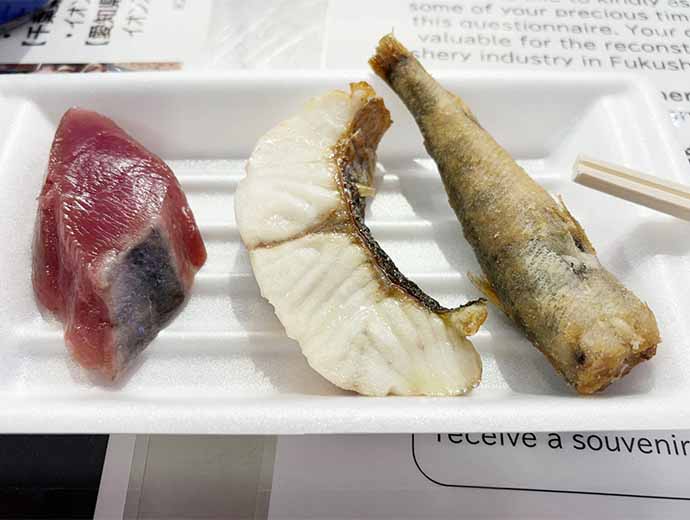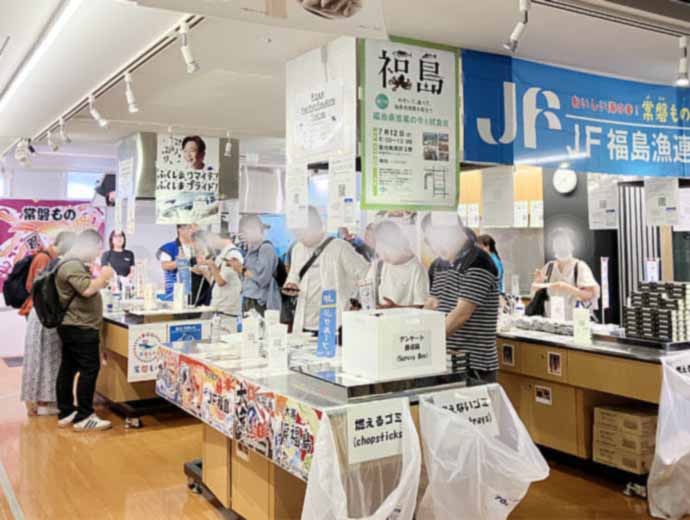 JFレポート JF福島漁連が「福島県漁業の今と試食会」を開催 築地魚河岸で旬の常磐ものをPR 2025.7.28 JF全漁連編集部 印刷する JF福島漁連は7月12日(土)、都内の「築地魚河岸」イベントスペースで、「のぞいて、食べて、福島県漁業を知ろう 福島県漁業の今と試食会」を開催しました。 17回目となる今回は、福島県産の魚の安全性を紹介するパネル展示のほか、福島の前浜で獲れたカツオ、スズキ、メヒカリを使った料理が無料で振る舞われ、来場者に福島県産水産物の美味しさと品質の良さをPRしました。 カツオ、スズキ、メヒカリを使った料理が無料で振る舞われました開催に先立ち、JF福島漁連の野﨑哲会長は、「(東京電力福島第一原発の)廃炉に向けた取り組みが進められているおかげで、常磐ものの魚を安心して届けることができている」と関係者に謝意を示した上で、「今回は、カツオやメヒカリのほか、自分が世界一だと思っているスズキを提供することができたので、ぜひ召し上がっていただきたい」とあいさつしました。 あいさつする野崎JF福島漁連会長今回試食会で振る舞われた料理は、「カツオの刺し身」、「スズキの塩焼き」、「メヒカリの唐揚げ」の3品で、それぞれ約1,000食分が用意されました。海外からの観光客や子ども連れなど、多くの来場者が福島県産の魚の美味しさに舌鼓を打ちました。 試食で振る舞われた「カツオの刺し身」、「スズキの塩焼き」、「メヒカリの唐揚げ」の3品(写真左から)海外からの観光客など多くの人が来場しました試食後、アンケートに答えた来場者には、お礼品としてJF福島漁連が2024年秋に売り出した「カナガシラアヒージョ」の缶詰がプレゼントされ、みな笑顔で会場を後にしました。 東北イベントJF全漁連編集部漁師の団体JF(漁業協同組合)の全国組織として、日本各地のかっこいい漁師、漁村で働く人々、美味しいお魚を皆様にご紹介します。 地域産業としての成功事例や、地域リーダーの言葉から、ビジネスにも役立つ話題も提供します。 SakanadiaFacebookこのライターの記事をもっと読む