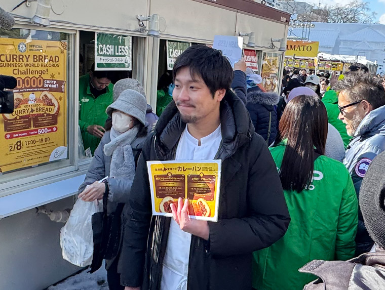 JFレポート 協同組合ネット北海道がさっぽろ雪まつりでギネス世界記録に認定! 8時間のカレーパン販売個数を更新 2025.3.25 全国の漁連・漁協 印刷する この情報は北海道漁業協同組合連合会(JF北海道ぎょれん)からの提供です。 * * * JF北海道ぎょれんやJF北海道信漁連をはじめ、JA北海道中央会、ホクレン、コープさっぽろなど道内16組織でつくる協同組合ネット北海道は2月8日(土)、第75回さっぽろ雪まつり大通西8丁目会場で北海道産食材を使った「北海道まるごとカレーパン(コク旨ビーフと贅沢スモークホタテの2個セット)」を販売し、これまでのカレーパン8時間販売でのギネス記録8340個を大幅に更新する1万1208個でギネス世界記録に認定されました。 この取り組みは、今年が国連の定める国際協同組合年であることを機に、協同組合が連携して世界一を目指す挑戦を通じて、消費者の方に道産食材の魅力を再発見してもらうとともに、協同組合の役割や意義を伝えていくことを目的に実施されたもので、当日は販売開始11時前には多くのお客さまが列を作り、8時間の販売終了となる19時を待たずして、用意した全ての商品が完売。その後、ステージで行われた結果発表において、見事ギネス世界記録に認定されたことが発表されました。 カレーパンの監修を行った下國伸シェフ。販売開始直後からカレーパンを求めるお客さんたちで会場は大行列!共同組合ネット北海道を代表してギネス記録認定より公式認定証を授与されるJA北海道中央会の樽井功会長※今回販売されたカレーパンは、今後コープさっぽろの店頭で販売される予定となっておりますので、楽しみにお待ち下さい。 * * * Sakanadia関連記事 ▶JF北海道ぎょれん、2024年度「全道なみまるクリーンアップ作戦」が始まりました|Sakanadia(サカナディア)|JF全漁連のWEBメディア ▶年末年始においしい道産水産物を! JF北海道ぎょれん、全道の児童福祉関連施設などへ道産水産物を寄贈|Sakanadia(サカナディア)|JF全漁連のWEBメディア 協同組合漁協(JF)北海道祭りイベント全国の漁連・漁協全国の漁連・漁協のお知らせや活動について選り抜きの情報をお伝えします。このライターの記事をもっと読む