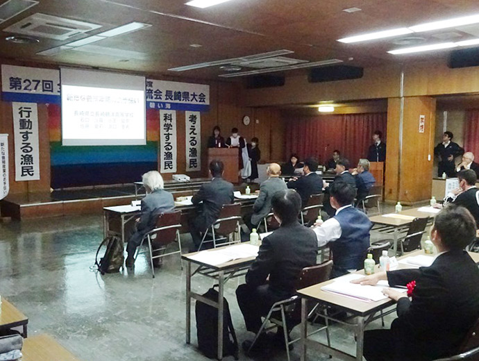 JFレポート JF長崎漁連が「第27回全国青年漁業者交流会長崎県大会」を開催 2024.12.24 全国の漁連・漁協 印刷する この情報は、長崎県漁業協同組合連合会(JF長崎漁連)からの提供です。 * * * JF長崎漁連は11月15日、「第27回全国青年漁業者交流会長崎県大会」を開催しました。 この大会は、長崎県における漁村青壮年の漁業者が研究実践してきた水産業に関する技術、経営ならびに地域活動などの成果を発表し、相互間の知識体験の交流を通して活動意欲の向上を図り、沿岸漁業の振興に寄与することを目的に開催したものです。 今回は高校生を含め3つの発表があり、九十九島漁業協同組合鹿町青壮年部の吉浦祐大さんが最優秀賞を、壱岐地区漁業士会の下條浩人さんが優秀賞をそれぞれ受賞しました。 2人は来年3月に開催される「第30回全国青年・女性漁業者交流大会」に出場する予定です。 * * * Sakanadia関連記事 ▶長崎県漁青連が魚食普及を目的に長崎女子短期大学と水産教室開催 ▶毎年大好評の長崎県漁青連の「煮干しの水族館」も実施!! 第41回長崎さかな祭り 漁協(JF)漁師若手九州青年部イベント全国の漁連・漁協全国の漁連・漁協のお知らせや活動について選り抜きの情報をお伝えします。このライターの記事をもっと読む