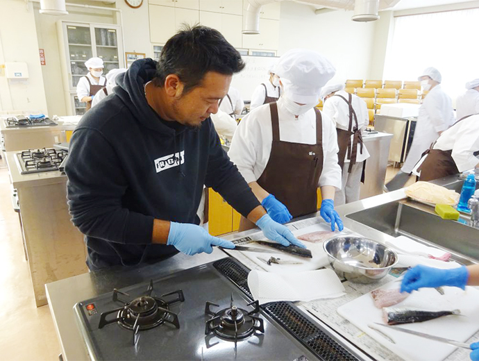 JFレポート 長崎県漁青連、長崎女子短期大学との水産教室を開催 2025.12.24 全国の漁連・漁協 印刷する この情報は、長崎県漁業協同組合連合会(JF長崎漁連)からの提供です。 * * * 長崎県漁協青壮年部連合会(以下、長崎県漁青連)は10月27日と11月20日に長崎女子短期大学の栄養士コースを受講している学生を対象とした「水産教室」を開催しました。 この水産教室は、卒業後、病院や保育園、高齢福祉施設等で栄養管理のプロフェッショナルを目指している学生に、長崎県の魚に親しんでもらい、将来、食のプロとして活躍する場面で、魚を使用した料理等を積極的に提供してもらうこと(魚食普及)を目的に開催しています。 今年は総勢約50人の参加。1年生はマアジ、2年生はアオリイカをさばき、刺身やバター炒め、アラを使って出汁を取った味噌汁などを作り試食しました。 * * * Sakanadia関連記事 ▶JF長崎漁連が「第28回全国青年漁業者交流会長崎県大会」が開催 ▶毎年好評の長崎県漁青連「煮干しの水族館」今年も開催!第42回長崎さかな祭り 食育漁協(JF)漁師九州青年部イベント全国の漁連・漁協全国の漁連・漁協のお知らせや活動について選り抜きの情報をお伝えします。このライターの記事をもっと読む