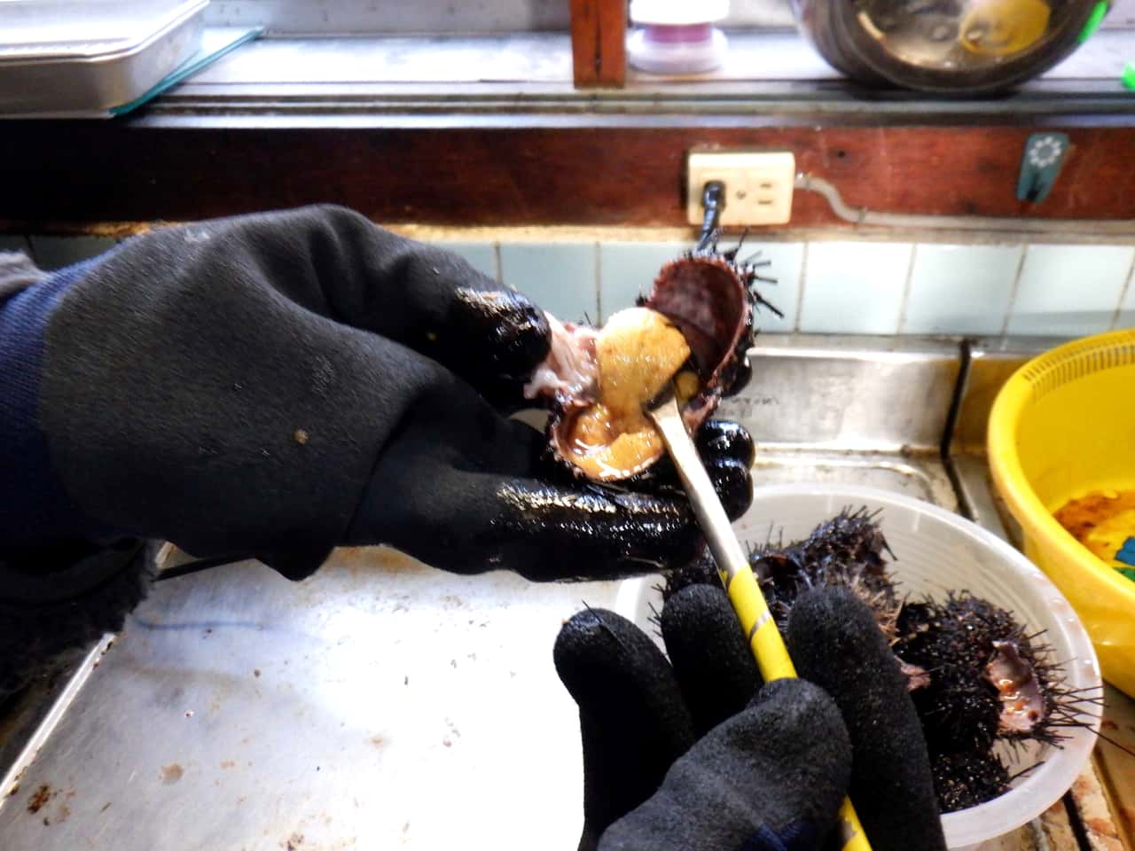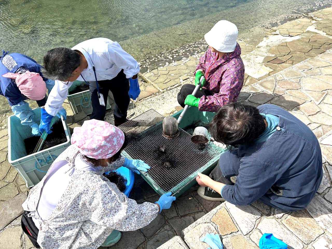 水産業の新戦略 ガンガゼの商品開発に取り組んだJF山口長門女性部 2025.7.31 古江晋也(ふるえ しんや) 印刷する 「海の厄介者」と言われるガンガゼガンガゼとガンガゼのウニ飯(写真提供:山口県萩・長門農林水産事務所)近年、山口県長門市の漁港内では海水温の上昇などの海洋環境の変化を受け、南方系のガンガゼが増加するようになりました。ガンガゼはウニの一種ですが、他のウニと比べ、食欲が旺盛であることから、磯焼けの原因の一つとされています。また、高級品であるムラサキウニやバフンウニ、アカウニなどに比べ、ガンガゼはトゲが長く、トゲの先には毒があるため刺されるとかなりの痛みがあります。さらに、ガンガゼを食べてみると特有の苦みがあるものもあり、他のウニのように頻繁に食べられていませんでした。そのためガンガゼは「海の厄介者」と言われてきました。こうしたなか、山口県漁業協同組合(以下、JF山口)の長門女性部は、山口県萩・長門農林水産事務所水産部のアドバイスを得ながら、低利用資源・未利用資源(以下、未利用資源)であったガンガゼをおいしく食べることができるように商品開発に着手しました。 トゲ落としや殻割りに手間がかかるガンガゼ長門女性部は従来から「未利用資源をおいしく食べる」ということをモットーに、未利用資源の商品開発などの活動を続けてきました。例えば、長門市の沖合で「はえ縄漁」が行われると、体長1mほどにもなるダイナンアナゴが漁獲されるそうですが、ダイナンアナゴは小骨が多く、調理しにくいことから未利用資源となっていました。そこで、長門女性部は唐揚げや酢味噌和えなどに調理し、試食会を開催しました。ただ、ダイナンアナゴは漁獲量が安定しないことなどから商品化までには至らなかった経緯があります。 こうした活動の一環として、2023年1月からガンガゼの商品開発がスタートしました。きっかけは、長門市の漁港内でガンガゼが増加し、磯焼けの原因ともなるなか、漁業者から「どうにかならないか」という声があったからです。長門女性部は山口県萩・長門農林水産事務所水産部に相談し、ガンガゼが海水温の上昇によって越冬が可能となったことなどから急増し、資源量が潤沢にあると推定されるなどの説明を受け、商品開発をめざすことにしました。 ガンガゼの身は餌によって味が変化します。そこで長門女性部のメンバーは長門市内のいくつかの地域のガンガゼを採捕し、試食することから始めました。すると、カジメなど海藻を食べているガンガゼは、苦みや生臭さなどがなく、おいしいことがわかりました。また岩ガキがある周辺に生息するガンガゼもおいしいことがわかりました。これは岩ガキの石灰分や岩ガキの表面に付着しているノリなどを食べているからではないかと考えられます。 次は、採捕したガンガゼのトゲをどのように効率よく落とすのかが課題となりました。ムラサキウニやバフンウニ、アカウニはトゲ付きのままでも出荷できますが、前述したようにガンガゼは毒のある長いトゲがあります。そこで長門女性部では、①手回し洗濯機にガンガゼを入れ、トゲを取り除く、②湯切り用の網を使い、バーベキュー用の網の上で転がしてトゲを取り除く、というアイデアを考案しました。①については、トゲを落とすことができましたが、ガンガゼの殻まで割れてしまい、身にトゲや殻が混じってしまうことも少なくありませんでした。そのため、②の方法が採用されました。ガンガゼのトゲを取り、殻を割って身を取り出すと、「生ガンガゼ」となります。 ガンガゼのトゲ落とし(写真提供:山口県萩・長門農林水産事務所)ガンガゼの身を取り出す作業(写真提供:山口県萩・長門農林水産事務所)生ガンガゼ(写真提供:山口県萩・長門農林水産事務所)無料試食会で70食分がたった15分で配布終了となったウニ飯長門女性部では、生ガンガゼをもとに様々な試作料理づくりが行われました。そして、ある程度の料理の方向性が決まったところで試食会を開催しました。山口県萩・長門農林水産事務所職員、長門市職員などが参加した試食会では、ガンガゼの焼き、湯煎、しょうゆ漬け、ガンガゼのウニ飯(以下、ウニ飯)などが提供されました。またウニ飯については、具材をウニのみ、貝柱入り、ニンジン・ゴボウ入りをそれぞれ試作し、大葉やショウガ、刻み海苔との相性などもチェックしました。その結果、ウニのみのウニ飯が「ウニの風味を十分に味わうことができる」と高い評価を得ました。 その後、ウニ飯をさらにブラッシュアップし、2024年2月17日に長門市の道の駅「センザキッチン」で「ウニ飯の無料試食会」を実施しました。無料試食会には朝市のために70食分を用意しましたが、開始早々から長蛇の列ができ、たった15分で配布終了となりました。この出来事を受け、長門女性部員はガンガゼに大きな手ごたえを感じたそうです。 無料試食会では参加者にアンケート調査(61人が回答)を