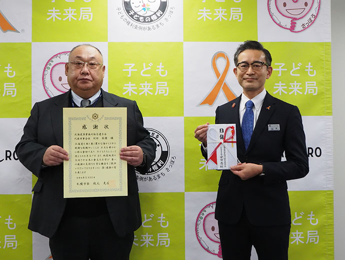 JFレポート JF北海道ぎょれん、全道の児童福祉関連施設などへ道産水産物を寄贈 2023.2.3 全国の漁連・漁協 印刷する 左から、感謝状をいただいたJF北海道ぎょれん安田専務、目録を手にする北海道保健福祉部の鈴木少子高齢化対策監この情報は、北海道漁業協同組合連合会(JF北海道ぎょれん)からの提供です。 * * * JF北海道ぎょれんでは、児童に対する魚食普及と社会貢献の観点より、札幌市内の児童福祉関連施設への道産水産物の寄贈を1993年から継続実施しています。 年末年始に道産水産物を味わっていただきたいと、毎年クリスマスの時期に行っている取り組みです。 ▶昨年のSakanadiaでの紹介記事はこちら 30回目の節目に合計34施設へ30回目の節目を迎えた今回は、札幌市内14施設に加え、希望のあった全道の児童福祉施設や母子生活支援施設、知的障がい児施設など20施設、合計34施設へ秋サケ、ホタテ、コンブ製品300万円相当を寄贈させていただきました。 左から、感謝状をいただいたJF北海道ぎょれん安田専務、目録を手にする札幌市子ども未来局の山本局長今回の寄贈に係り昨年12月22日(木)、北海道、札幌市それぞれへの贈呈式が執り行われ、ぎょれんの安田昌樹専務から北海道保健福祉部の鈴木一博少子高齢化対策監、札幌市子ども未来局の山本健晴局長へ目録が手渡されると、この取り組みに対して感謝状をいただきました。 * * * Sakanadia関連記事 ▶JF北海道ぎょれんが、札幌市内の児童福祉関連施設へ道産水産物を寄贈 ▶JF北海道ぎょれん×コンサドーレ 「食育&サッカー教室」を開催 食育漁協(JF)北海道全国の漁連・漁協全国の漁連・漁協のお知らせや活動について選り抜きの情報をお伝えします。このライターの記事をもっと読む