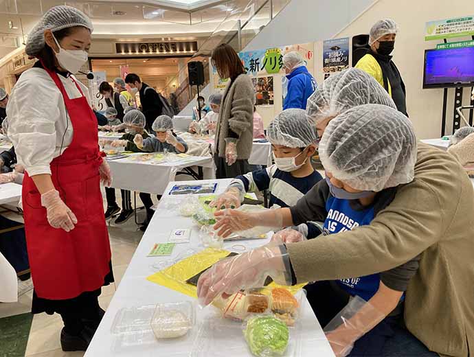 JFレポート 香川県産「新ノリ祭り」開催! 「おにぎらず体験」やクイズも 2023.3.13 全国の漁連・漁協 印刷する この情報は、香川県漁業協同組合連合会(JF香川漁連)からの提供です。 * * * 2023年1月28日(土)、イオンモール高松(香川県高松市)で「香川県産新ノリ祭り」が開催されました。 本イベントはJF香川漁連、香川県などで構成される、さぬき海の幸販売促進協議会等が主催し、新ノリの販売が開始されるこの時期に、地域の皆さんに香川県産ノリのおいしさを知ってもらうことを目的に開催されています。 おにぎらず体験教室の様子会場では小学生以下のお子さんと保護者の方を対象に「おにぎらず体験教室」が開催され、自宅でも手軽にできる「おにぎらず」を実際に作り、香り豊かな新ノリを味わってもらいました。 具材を重ねるだけ!切って開くと見た目にも楽しめますまた、「ノリ〇×クイズ」も開催。 ノリに関しての知識を楽しみながら学んでもらいました。 ノリ〇×クイズの様子その他、新ノリの販売、ノリ等級当てクイズ、ノリ養殖のDVD放映、貝殻お絵描きなど、さまざまなイベントを楽しんでもらいました。 香川県で養殖される初摘みノリを身近に感じてもらえるイベントになりました。 * * * サカナディア関連記事 ▶2/26まで募集中!「のりのフォトコンテスト」開催! ▶酢飯いらず!海苔で簡単&楽しいクリスマス料理「手まきごはん ▶糀で時短レシピ「海苔のおいしさ再発見!その2‐レシピ編」 レシピ食育JF全漁連漁協(JF)中国・四国祭りイベント全国の漁連・漁協全国の漁連・漁協のお知らせや活動について選り抜きの情報をお伝えします。このライターの記事をもっと読む