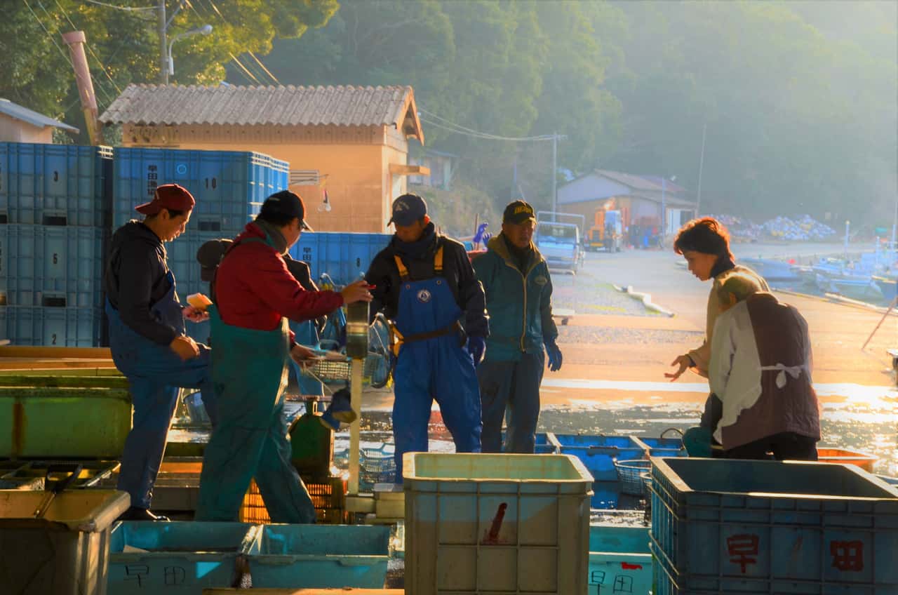 漁師と働くひとたち 地域づくりの担い手はミュージシャン 2019.12.27 JF全漁連編集部 印刷する JF三重外湾尾鷲事業所早田職員 湯浅光太さん(2013年2月撮影)小さな漁村のある朝の光景。水揚げされた魚を仕分け計量する職員や漁師に交じり、地元の女性たちが魚を選ぶ。 2月初旬の凍り付いたような寒さの中で、そこだけ息吹が見えてくるような朝日が照らす世界に、湯浅光太さんがいる。 小さな町・早田(はいだ)町湯浅光太さん――事務所にて「小さな事務所に3人の職員。なんでもやりますよ」と笑う湯浅さんの一日は、㈱早田大敷の水揚げから始まる。 その後、事務作業や尾鷲事業所、本所などとのやりとり、国や県の事業も担当しているため、忙しい日々を送る。 三重県尾鷲市早田(はいだ)町は、尾鷲市から国道311号線を走ること約20分。国道から支線に入ると、山の切れ目から海の水面が見える。 早田町の主要道路はこの道一本のみ。家や山が迫る細い道が続き、海にぶつかる手前左にやっとJF三重外湾尾鷲事業所早田の事務所があり、そこにある購買部が、町唯一の小売店だ。 漁業が早田の唯一の産業(2013年2月)魚の美味しさは世界一!「尾鷲の魚は美味しいんです。特に早田は!」と嬉しそうに語る。 忙しい仕事が終わったあとの楽しみは、自分でさばいた魚料理を肴にお酒を飲むこと。 料理を自身のFacebookにアップすると、あっという間にコメントが並ぶ。 魚料理が得意な湯浅さん。特に絶品なのが、その日揚がった魚を使った「なめろう」。 漁師が皿をなめるほど美味しいというのがその名の由来だが、湯浅さんの「なめろう」は、まさにその名の通りの美味しさだ。 大きなまな板いっぱいに「なめろう」(湯浅さんのFacebookより)「幸せになるために尾鷲に戻る」高知大学で近現代文学を学び、名古屋で就職した。 結婚して長女が生まれたとき、自分が生まれ育った尾鷲で育てたいと、ふと思った。父親の体調も思わしくなかった。 当時にお世話になった方が背中を押してくれて、尾鷲に戻った湯浅さん。「子どもも生まれたばかりなのに、こんな仕事もない田舎に帰ってきて大丈夫か」と、母親から心配された。それでも「幸せになるために尾鷲に戻ってきた」と説得した。 「孫にはとてもやさしい、自慢の母でした。今年七回忌を済ませたところです」 「漠然とだけど、尾鷲や早田の魅力を情報発信していきたい」と考えていた湯浅さんは、塾の講師を経て2010年、「ふるさと雇用再生事業」を受託したJF早田(当時)で、働き始めた。 早田は母親の実家がある町で、「子供のころからお世話になった場所に恩返しがしたかった」という。 早田で働くうちに、魚の美味しさや自然の美しさを実感する一方で、年々減り続ける人口に「このままでは町がなくなってしまう」と危機感を覚えた。 朝日に照らされて早田大敷の漁船が戻ってきた(2013年2月撮影)地域の担い手づくりとして――早田を残すため、岩本芳和JF早田組合長(現・㈱早田大敷代表取締役)が中心となって県や市、大学などと連携し2010年に設立された「ビジョン早田実行委員会」に参加し、担い手対策などに奔走する。 2012年にはJF尾鷲(当時)が立ち上げた「早田漁師塾」の実働部隊として参画。漁師塾は現在8年目を迎えるが、これまで11人が入塾し、3人が早田に残っている。 ただ、早田は後継者育成だけでなく、高齢者にもやさしい地域。早田大敷で定年を迎えた漁師も、小型定置網やイセエビ刺し網で生計を立てられる。地域全体を守ろうと、湯浅さんは日々奔走している。 地元の漁港イベントで歌う湯浅さんそんな湯浅さんには、もうひとつの顔がある。ミュージシャンとしてライブを開いたり、イベントなどで歌って地域を盛り上げているのだ。さまざまな仕事をこなしながら、余暇もしっかり楽しむ。 人口減少はなかなか歯止めがかからないが、早田に「限界集落」という言葉が持つ寂しさはなかった。 若い人から高齢者まで活躍する早田へ(2013年2月撮影)こうちゃんの早田ブログ(アーカイブ) 湯浅光太さんFacebook 漁協(JF)Iターン・Uターン近畿JF全漁連編集部漁師の団体JF(漁業協同組合)の全国組織として、日本各地のかっこいい漁師、漁村で働く人々、美味しいお魚を皆様にご紹介します。 地域産業としての成功事例や、地域リーダーの言葉から、ビジネスにも役立つ話題も提供します。 SakanadiaFacebookこのライターの記事をもっと読む
