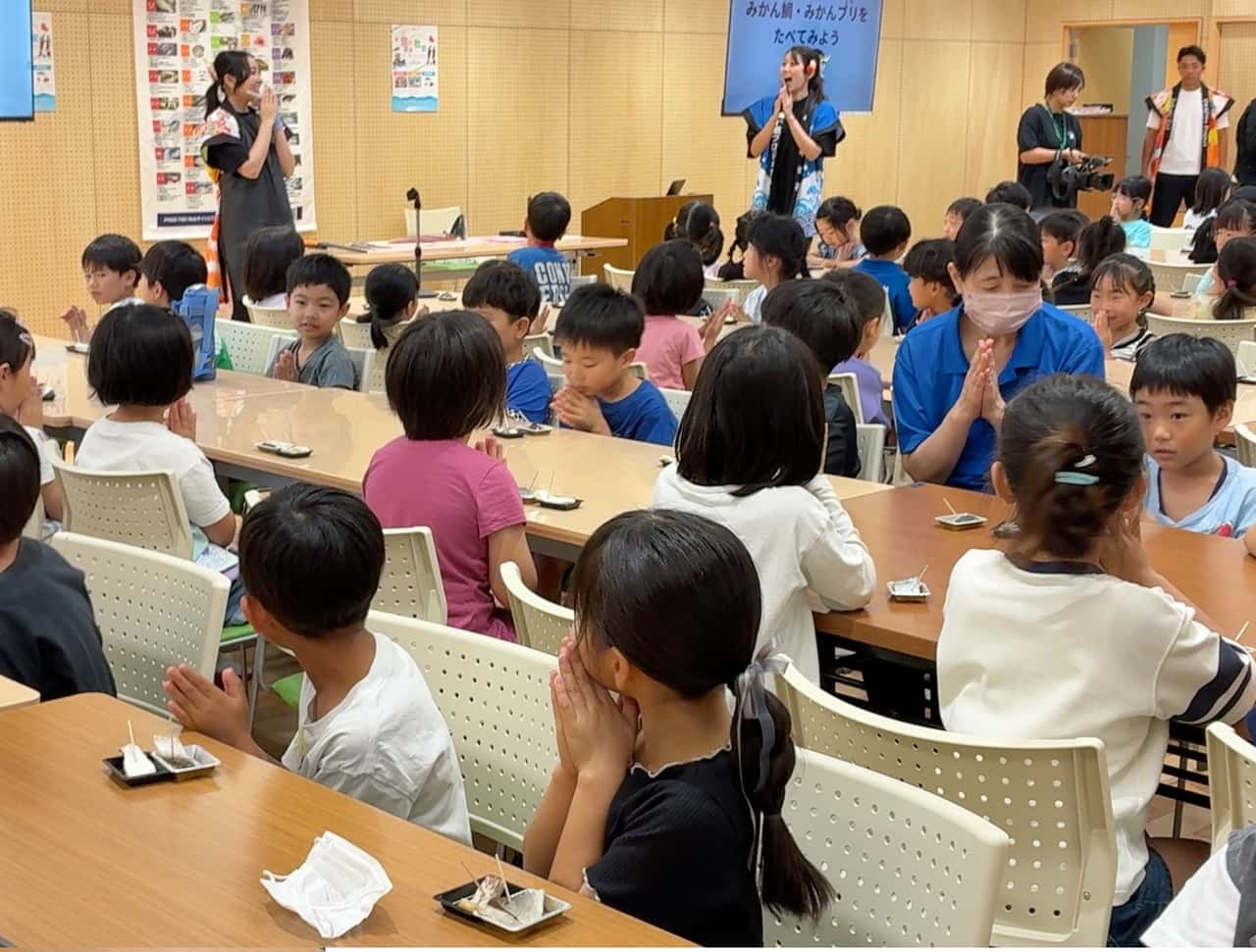 JFレポート 「みかんブリ」「みかん鯛」の魅力を全国へ発信!「みかん魚アートチャレンジ」を開催 2025.7.16 JF全漁連編集部 印刷する 7月1日(火)JF全漁連と愛媛県,イオンリテール株式会社,株式会社宇和島プロジェクトが共催し,宇和島市立吉田小学校にて「みかん魚アートチャレンジ」を実施しました。 このプロジェクトは,愛媛県のブランド魚「みかんブリ」「みかん鯛」の魅力を全国へ発信することを目的とした「地域の食と創造力をつなぐ,芸育プログラム」の一環として企画されました。 吉田小学校で開催されたこの特別授業には,1年生から3年生までの児童約120人が参加し,みかんブリ生産者による食育授業やブリの解体ショーのほか,ミカンの皮を魚のエサに使用することによるごみの排出量削減についても学びました。 「サバキ女子」として県内外でマグロ解体ショーなどを披露している高岡奈々葉さん解体した「みかんブリ」を興味深そうに眺める子どもたちほんのりミカンが香る魚に子どもたちも驚きたくさん学んだ後はお待ちかねの試食タイム。子どもたちは「みかんブリ」と「みかん鯛」の塩焼きを試食し,魚からほんのりミカンの香りがすることに驚く様子が見られました。ミカンなど柑橘系の果物の皮に含まれる成分「リモネン」は生臭さを抑制し,同じく皮に含まれる「ポリフェノール」は血合いの変色を遅らせ,新鮮さを長持ちさせる効果があるといわれます。よく,香魚と呼ばれるアユが,食べたエサによってその身の香りが違うことは知られていますが,ブリやタイでも同じ作用があるんですね。 「みかんブリ」「みかん鯛」の塩焼きに手を合わせる子どもたちJF全漁連も,愛媛県のプライドフィッシュ「愛育フィッシュみかんブリ」と「愛育フィッシュみかん鯛」の説明を行いました。特製のタペストリーやクイズカードを用意したところ,子どもたちの知的好奇心を大いに刺激したようで,休み時間には人だかりができるなど,大好評でした。 子どもたちにプライドフィッシュの説明をするJF全漁連 消費拡大対策室の河野拓室長子どもたちのイラストがシールになります食育イベントの最後には,美味しく味わった「みかんブリ」と「みかん鯛」のイラストにチャレンジした子どもたち。小学校低学年の子どもたちらしい元気な筆致で,魚がミカンを食べる様子や海を元気に泳ぐ様子が描かれていました。 思い思いに「みかんブリ」や「みかん鯛」」のイラストを描く子どもたち子どもたちの作品は8月5~10日に宇和島市内のギャラリーに展示される予定です。来場者投票を参考に選ばれた最優秀作品は販促シールとして起用され,東北を除く本州・四国のイオンリテールの店舗で11月ごろお披露目されるということです。楽しみですね! 食育JF全漁連漁協(JF)SDGsプライドフィッシュ中国・四国イベントJF全漁連編集部漁師の団体JF(漁業協同組合)の全国組織として、日本各地のかっこいい漁師、漁村で働く人々、美味しいお魚を皆様にご紹介します。 地域産業としての成功事例や、地域リーダーの言葉から、ビジネスにも役立つ話題も提供します。 SakanadiaFacebookこのライターの記事をもっと読む
