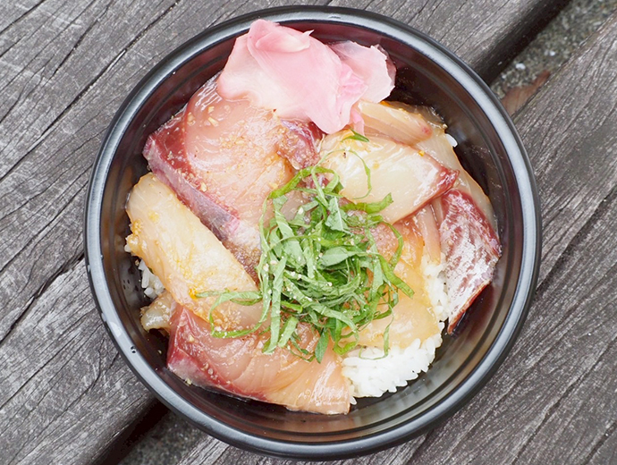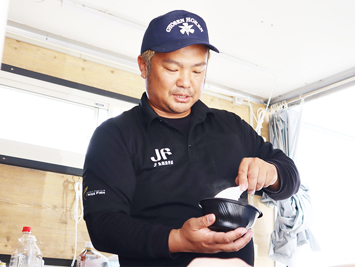 水産業の新戦略 低・未利用魚の魚食普及活動に力を入れる魚庭漁青連 2026.1.19 古江晋也(ふるえ しんや) 印刷する 「大阪府産の魚介類を大阪の飲食店で出してほしい」という思い大阪府下の漁協青年部長たちがメンバーとなっている大阪府漁協青壮年漁業者連絡協議会(以下、魚庭(なにわ)漁青連)は現在、大阪の魚介類・漁業周知に加え、低利用魚や未利用魚の魚食普及活動にも力を入れています。 きっかけは、「大阪の漁業者が大阪の飲食店で食事をしても、大阪府産の魚介類をあまり食べることができない」という状況に危機感を持ったことでした。 魚庭漁青連会長の勝元一成さんは、「このような状況ではいけない。多くの人々に大阪の魚を手頃な価格で食べてもらわなければ」と考え、大阪産の低利用魚などの普及に向けて、魚庭漁青連のメンバーや大阪府漁業協同組合連合会(以下、JF大阪漁連)の担当者と協力し、さまざまなイベントに積極的に参加しています。 キッチンカーで海鮮丼を提供する魚庭漁青連(写真提供:JF大阪漁連)海鮮丼を盛り付ける魚庭漁青連会長の勝元一成さん(写真提供:JF大阪漁連)低利用魚の地産地消は生産者と消費者が「ウイン・ウイン」の関係になる大阪湾はいわし類、サワラ、アナゴ、キジハタ(アコウ)、ハモ、クロダイ(チヌ)、マダコ、えび類、イヌノシタ(アカシタ)など、さまざまな魚介類が漁獲される豊かな漁場です。しかし、旬の時期ではなかったり、知名度が低かったりする魚介類は、美味しくても魚価が低い傾向にあります。 例えば、冬場のクロダイは脂の乗りがよく、「マダイよりもおいしい」ともいわれていますが、旬の時期から外れると魚価が低くなります。アカエイの肝は、「カワハギの肝のような味わい」であるともいわれますが、認知度が低いことなどから魚価は低迷しています。 また、ニシンの仲間であるヒラは深い味わいがありますが、小骨が多く「骨切り」という処理が必要なことや認知度の低さから、大阪ではあまり食卓に並ぶことはありません。そして、大阪湾で多く水揚げされるボラは、刺身やフライにするとおいしい魚ですが、地元ではあまり食べられず、その多くは輸出に回っています(海外では、大阪府産のボラは鮮度の良さから評価を得ています)。 このようなクロダイ、アカエイ、ヒラ、ボラなどの低利用魚は、刺網漁法や底びき網漁法などで漁獲されます。低利用魚などが日常的に食卓に並ぶようになれば、大阪府民は「安くておいしい魚を食べることができる」ようになり、漁業者は「燃料代や氷代などの経費を賄うことができ、漁業を継続できる」ことにつながります。このように大阪湾における低利用魚などの地産地消は、生産者と消費者が「ウイン・ウイン」の関係になる取り組みといえます。 左からJF大阪漁連の柳慶士朗さん、魚庭漁青連会長の勝元一成さん、JF大阪漁連の成木壮光さん低利用魚等を活用した「海鮮丼」魚庭漁青連による魚食普及活動は、消費者とのフェイス・トゥ・フェイスを重視し、「食べてもらって、美味しさを分かってもらう」ことに力を入れています。そのためメンバーは、大阪市や岸和田市などで開催されるイベントに積極的に参加し、ボラ、クロダイ、エイ、ブリの若魚であるツバスなどの低利用魚などを使った漬け丼や海鮮丼、海鮮巻きなどをテントブースやキッチンカーで販売してきました。これらを食べた人々は、そのおいしさに驚くそうです。キッチンカーは、魚庭漁青連役員など有志が資金を出し合って2025年に購入しました。キッチンカーを導入したことで活動範囲も広がり、準備もスムーズになりました。 低利用魚を使用した海鮮丼(写真提供:JF大阪漁連)一方、こうした活動をバックアップしているのがJF大阪漁連の成木壮光さんと柳慶士朗さんです。二人は「大阪の魚がおいしいことをもっと多くの人に知ってほしい」という思いから、大阪府のブランド“大阪産(もん)”に関する出展イベントや大阪関西万博でのステージイベントなど漁業者と行政の間に立ち、大阪産魚介類の魅力を伝えられるよう調整を行ってきました。その結果、最近ではイベントの運営側から魚庭漁青連に声がかかるようになり、大阪の漁業の現状を訴える機会が増加するなど、大阪府民とのコミュニケーションを深めています。 大阪産(もん)マルシェLink to EXPO 2025のトークイベントに参加した魚庭漁青連の皆さん(写真提供:JF大阪漁連)高校生が考案・開発した「アカエイのトルティーヤ」魚庭漁青連は2025年4月から、低利用魚などの活用をテーマに岸和田市立産業高等学校の授業に協力しています。同授業は課題研究の授業としてスタートし、生徒は大阪の漁業について学習するとともに、低利用魚などの活用方法の検討を行い、レシピづくりやメニュー開発などに取り組みます。 魚庭漁青連は2か月に1回ほど出前授業や、漁港・漁船視察、試食会などを実施しており、刺身やフライを食べた生徒は、「思っていたよりもお