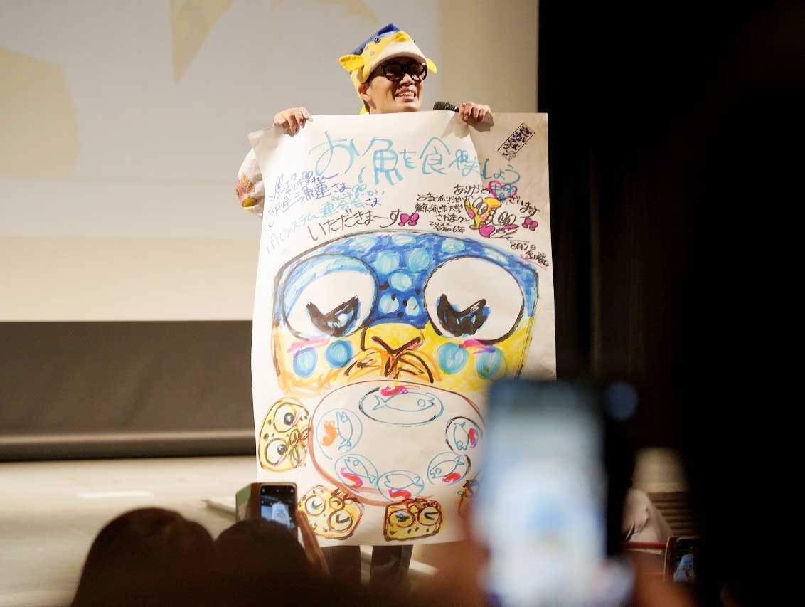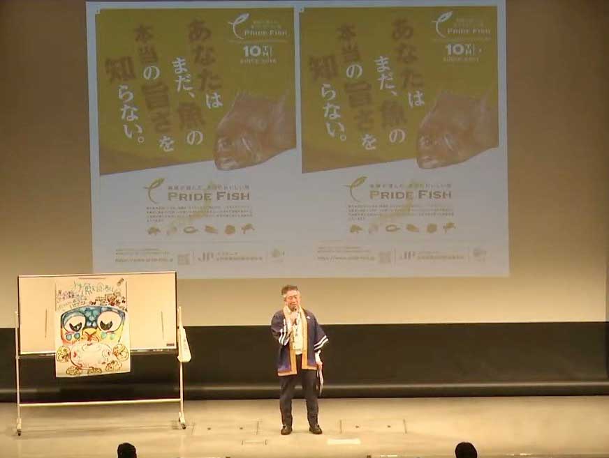 JFレポート 「おしえて!さかなクン 海と環境とみんなのくらし『お魚食べよう』夏休みトークライブ」開催!! JF全漁連とパルシステム連合会が共催 2024.9.19 JF全漁連編集部 印刷する JF全漁連とパルシステム生活協同組合連合会(以下、パルシステム連合会)は8月2日(金)、「おしえて!さかなクン 海と環境とみんなのくらし『お魚食べよう』夏休みトークライブ」をニッショーホールで開催しました。 本イベントは、パルシステム連合会が2024年4月から展開している、日本の水産業を応援するサステナブルアクション「お魚食べよう」の一環として、パルシステム組合員らを対象に開催したもの。 JF全漁連魚食普及推進委員であるさかなクンが海の環境についてや、JFグループが取り組む「プライドフィッシュプロジェクト」に登録されている魚などを紹介し、参加者に魚食の素晴らしさなどをアピールしました。 会場にはパルシステム組合員の親子連れを中心に140組364人が訪れ、オンラインでもライブ配信されました。 トークライブを行うさかなクン(写真提供:パルシステム連合会)さかなクンのトークショーでは、「プライドフィッシュ」に登録された魚について、即興でイラストを描きながら、特徴などを紹介するイラストクイズも行われました。 さかなクンからの問いかけに対して、子どもたちはたくさん手を挙げて応え、会場は大いに盛り上がりました。 さかなクンがイラストで魚食をアピール(写真提供:パルシステム連合会)このほか、JF全漁連の内田珠一専務が日本の魚食文化の豊かさについて紹介した上で、「魚をおいしく食べることが漁業者の力になるので、皆さんには国産の魚をたくさん食べてほしい」と呼びかけました。 魚食を呼びかける内田JF全漁連専務(写真提供:パルシステム連合会)JF全漁連の河野拓 消費拡大対策室長は10周年を迎えた「プライドフィッシュ」プロジェクトの取り組みについて紹介しました。 プライドフィッシュプロジェクトを紹介する河野JF全漁連消費拡大対策室長(写真提供:パルシステム連合会)イベントを終えての感想では、「とても楽しかった。また、参加したい」、「お魚について深く知ることができた」、「魚を食べ続けられる世界を守りたいと思った」、「ますます魚を大切にしておいしく食べていきたい」など、評価する声が多く寄せられました。 終了後の記念撮影(写真提供:パルシステム連合会)* * * 【Sakanadia関連情報】 【特集 特別座談会】「SDGsから未来の海を考える」前後編で公開 JF全漁連プライドフィッシュイベントさかなクンJF全漁連編集部漁師の団体JF(漁業協同組合)の全国組織として、日本各地のかっこいい漁師、漁村で働く人々、美味しいお魚を皆様にご紹介します。 地域産業としての成功事例や、地域リーダーの言葉から、ビジネスにも役立つ話題も提供します。 SakanadiaFacebookこのライターの記事をもっと読む
