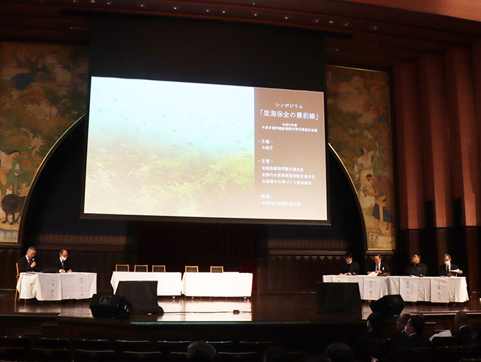 JFレポート 水産多面的機能に関するシンポジウムを開催 2024.2.14 JF全漁連編集部 印刷する 水産庁主催のシンポジウム「里海保全の最前線」が1月27日、東京大学安田講堂で開催されました(主管:JF全漁連、全国内水面漁業協同組合連合会、全国豊かな海づくり推進協会)。 このシンポジウムは、全国各地の海辺や川辺で環境保全活動などの「水産多面的機能発揮対策」に取り組む漁師や市民を中心としたグループが、これまでの活動の成果や課題について報告などを行うもの。 今回もオンラインと併用で開催され、活動報告や専門家の講演を聞くために、多くの関係者が聴講しました。 ※「水産業の多面的機能」とは、「美味しく新鮮な魚を安定的に皆さんに提供する」以外の「水産業がもたらす良い影響」のこと。 漁師や漁協は、海難救助や海浜清掃、藻場や干潟を守り海の環境を保全する活動などを行っており、住民や企業などと連携した活動に発展にしている地域もあります。 ▶水産業の多面的機能とは? 基調講演は「魚はなぜ減った?~この80年間に起こったこと~」がテーマ基調講演では、東京大学大学院新領域創成科学研究科教授の山室真澄氏が、魚の生息環境の変化をとらえるためのモニタリング実施の重要性などについて講演しました。 東京大学大学院新領域創成科学研究科の山室真澄教授5つのグループが活動報告活動報告では、全国各地で藻場・干潟、サンゴ礁の環境保全、国境監視などに取り組んでいる活動組織の中から先進的、効果的な取り組みを行っている5つのグループが活動内容を報告しました。 【海の監視ネットワーク強化】 「海の監視ネットワーク強化の取り組み」柏原地区保全活動組織(福岡県芦屋町) 【藻場の保全】 「長崎市の藻場の保全活動について」長崎市水産農林部水産振興課(長崎県長崎市)、中嶋泰氏(水産多面的機能発揮対策事業サポート専門家) 【内水面生態系の保全】 「笑顔あふれる鏡川を次世代に」鏡川環境保全の会(高知県高知市) 【干潟等の保全】 「八代海のアサリ資源を守り、干潟の生産力を高める」二見海岸の干潟を守る会(熊本県八代市) 【サンゴ礁の保全】 「サンゴを守り、生物多様な豊かな海を守る」日南海岸サンゴ群集保全協議会(宮崎県日南市) ▶発表詳細はシンポジウム資料でご覧いただけます。 活動報告の発表者とコメンテーターらが意見交換最後に東京大学大学院農学生命科学研究科教授の八木信行氏がコーディネーターとなり、ディスカッションを行いました。参加者からの質問に回答したほか、5人のコメンテーターと活動報告を行った発表者が意見交換しました。 <ディスカッション> ■コーディネーター 八木信行氏(東京大学大学院農学生命科学研究科国際水産学研究室 教授) ■コメンテーター 鹿熊信一郎 氏(佐賀大学海洋エネルギー研究所 特任教授) 桑原久実 氏(元 国立研究開発法人 水産研究・教育機構 水産技術研究所 企画調整部門 研究主幹) 崎長威志 氏(広島県内水面漁業協同組合連合会 参与) 玉置泰司 氏(元 国立研究開発法人 水産研究・教育機構 中央水産研究所 経営経済研究センター長) 藤田大介 氏(東京海洋大学大学院 准教授) ▶水産多面的機能発揮対策情報はこちら JF全漁連漁協(JF)SDGs漁師資源管理イベントJF全漁連編集部漁師の団体JF(漁業協同組合)の全国組織として、日本各地のかっこいい漁師、漁村で働く人々、美味しいお魚を皆様にご紹介します。 地域産業としての成功事例や、地域リーダーの言葉から、ビジネスにも役立つ話題も提供します。 SakanadiaFacebookこのライターの記事をもっと読む