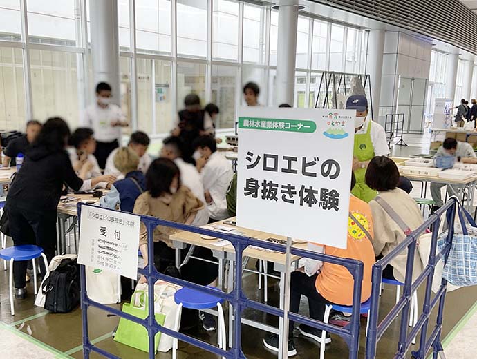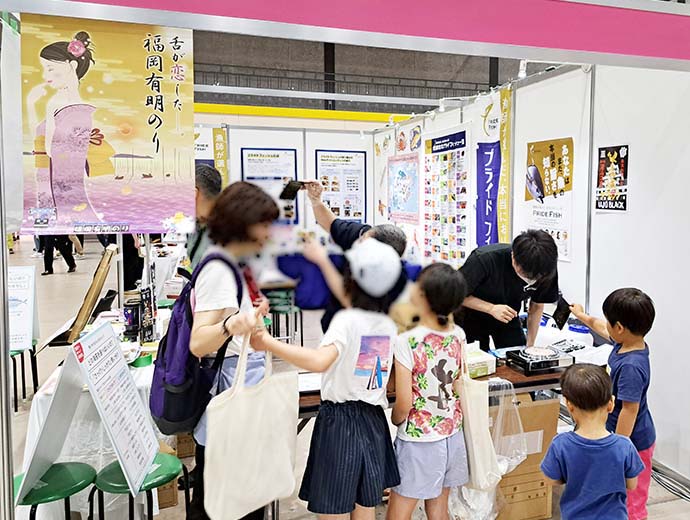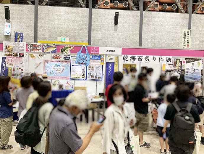 JFレポート 来場者2万人超の大盛況! 「第18回食育推進全国大会inとやま」イベントレポート 2023.6.29 JF全漁連編集部 印刷する 2023年6月24日(土)・25日(日)の2日間、富山県富山市の富山産業展示館(テクノホール)他で、「第18回食育推進全国大会inとやま」が開催されました。 オンライン配信も組み合わせながら、会場ではセミナーやステージ、展示やPR、飲食コーナー、農林水産物のキッチンカーなど、約140団体がそれぞれの食育コンテンツを提供。 2日間で約2.3万人が来場し、「おいしい!」「楽しい!」企画で盛り上がりました。 ブースの様子そんななか、JF全漁連ブースでは「プライドフィッシュモバイルクイズ」や「おさかな折り紙体験」を実施。 折り紙体験では、地元の富山湾でも漁獲されるマダイのデザインに挑戦してもらいました。少し難しい工程も含んだ折り紙に、参加した子どもたちの中には「あれ、これどうやるんだ?」と苦戦する姿もありましたが・・・ 折り紙体験の様子最後にはそれぞれが可愛いタイを完成させ、「やったー、できた!」と満足そうな笑顔を見せてくれていました。 またブースには昨年も好評だった、全国漁連のり事業推進協議会とのコラボ企画「乾海苔炙り体験」コーナーを用意。 今年も多くの参加希望があり、両日とも早々に定員に達するほどの人気企画となりました。 ノリの炙り体験の様子参加した子どもたちは、ノリを炙る前と後に、”香り”と”味”の変化を確認。「いい香り!」「おいしくなる!!」と驚きの声を上げながら、体験を楽しんでいました。 また会場には、地元の富山県漁業協同組合連合会(JF富山漁連)も出展。地元の水産物を使ったレシピカードを配布したほか、体験エリアでは「シロエビの身抜き体験」を実施しました。 そして25日(日)のイベントステージには、Sakanadia特別ライターでJF全漁連魚食普及推進委員でもある、さかなクンが登場!たくさんの子どもたちが詰めかけ、ステージに魅了されていました。 JF全漁連ブースでも、さかなクンが描いた富山湾で漁獲される水産物のイラストを展示したほか、全国各地のプライドフィッシュを紹介する「全国プライドフィッシュ一覧タペストリー」や、新コンテンツ「魚食育ページ」のポスターを展示。第24回シーフード料理コンクールの募集チラシやレシピブックなどの配布も行いました。 他の出展者ブースもそれぞれ盛況の様子で、来場者の皆さんにさまざまな企画で楽しんでいただいた2日間でした。 展示の様子「第18回食育推進全国大会inとやま」公式サイト内では、当日の動画アーカイブが公開されているほか、プライドフィッシュ公式サイト内でもイベントレポートを掲載しています。 そちらもぜひ、ご覧ください。 ▶動画アーカイブ | 「第18回食育推進全国大会inとやま」公式サイト ▶「第18回食育推進全国大会inとやま」イベントレポート | プライドフィッシュ * * * Sakanadia関連記事 ▶第18回開催告知 さかなクンのトークショーも! 6/24・25「第18回食育推進全国大会 in とやま」開催 ▶第17回開催情報 【ご来場ありがとうございました】JF全漁連、「第17回食育推進全国大会inあいち」に出展 食育プライドフィッシュイベントさかなクンJF全漁連編集部漁師の団体JF(漁業協同組合)の全国組織として、日本各地のかっこいい漁師、漁村で働く人々、美味しいお魚を皆様にご紹介します。 地域産業としての成功事例や、地域リーダーの言葉から、ビジネスにも役立つ話題も提供します。 SakanadiaFacebookこのライターの記事をもっと読む