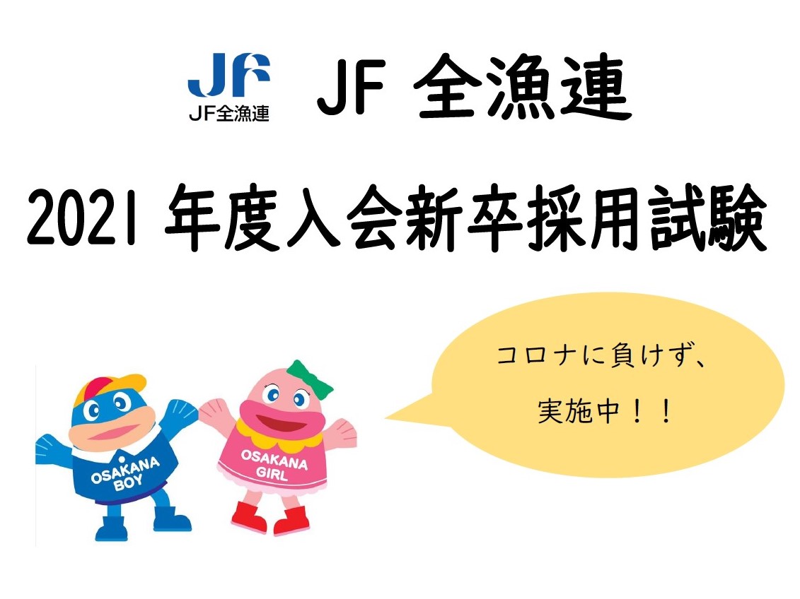 コロナに負けず、採用試験やってます!JF全漁連には、4月に初々しい新卒の新人さんたちが入ってきたばかりですが、いつのまにか、もう来年度の新卒採用試験の時期です。(採用情報はこちら) 在宅勤務ばかりで、まだ新人さんたちにも会えてないのに、2020.5.28JFレポートJF全漁連編集部