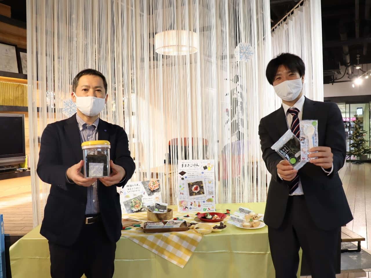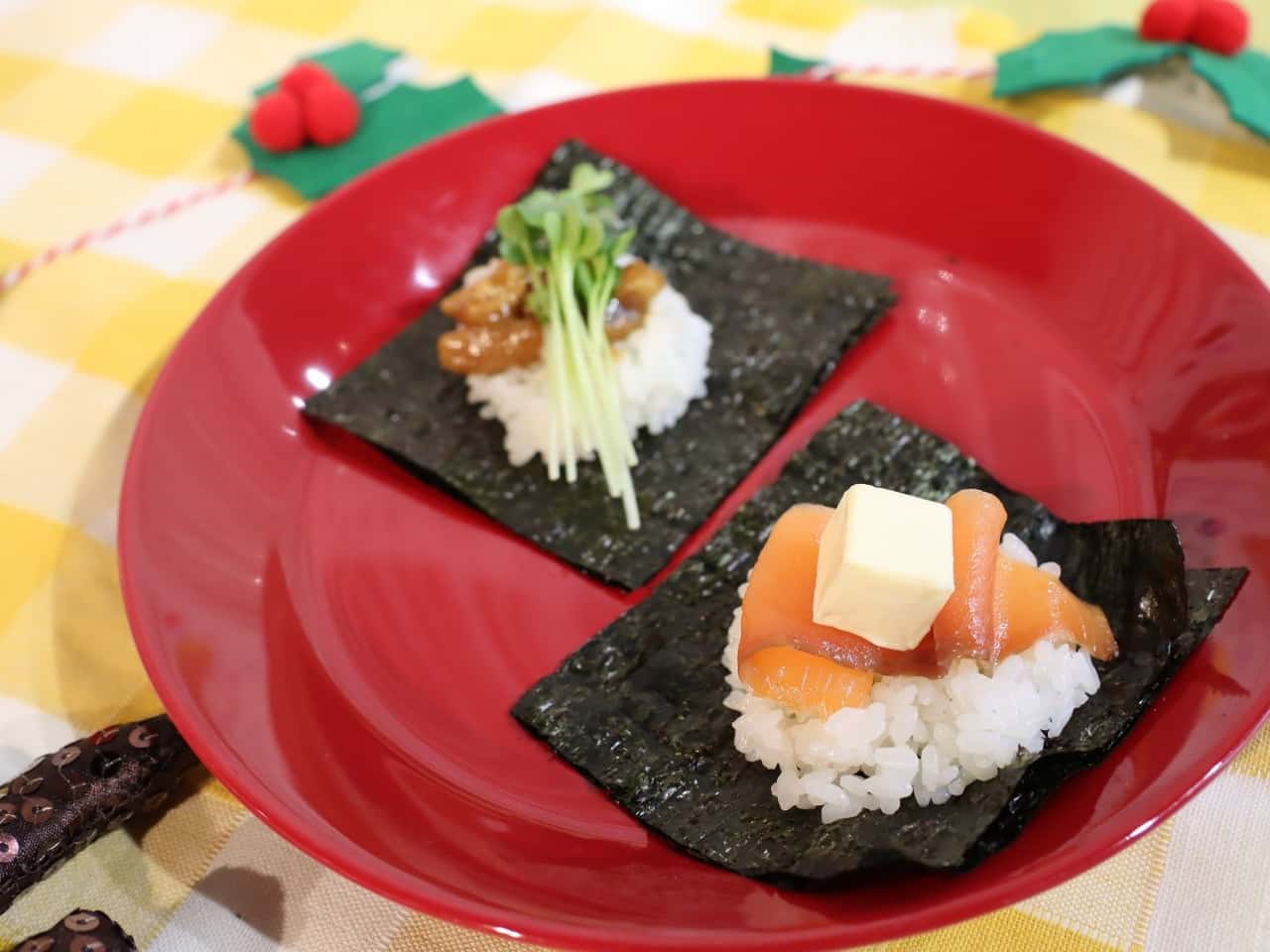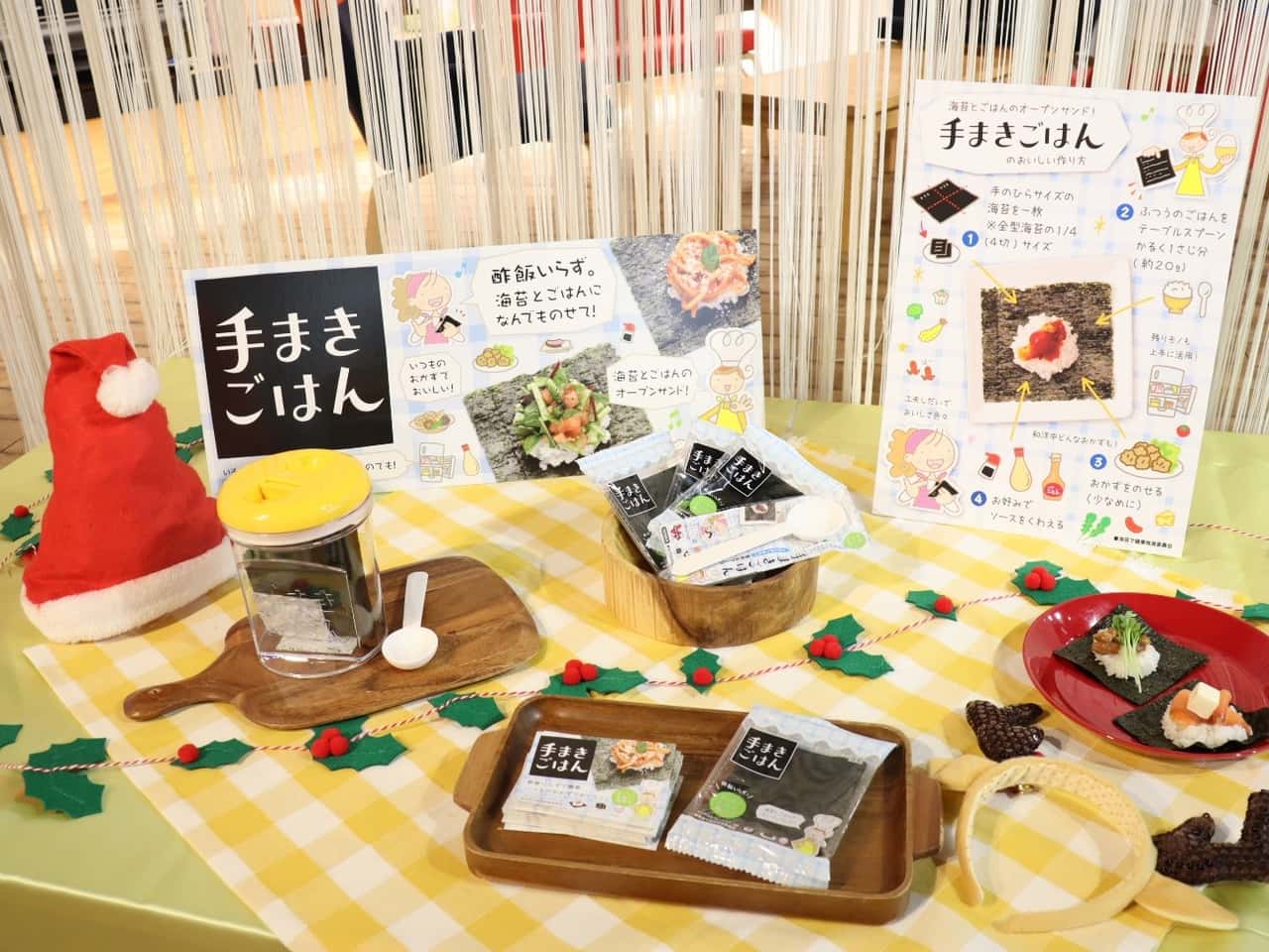JFレポート 酢飯いらず!海苔で簡単&楽しいクリスマス料理「手まきごはん」—ABC Xmas Party 2020で紹介— 2020.12.17 JF全漁連編集部 印刷する 酢飯いらず。海苔と好きな具材で「手まきごはん」もうすぐクリスマスですね! 今年はお家でパーティという方が多いのではないでしょうか。 そんなパーティを彩るのがクリスマス料理。でもクリスマス料理って見た目も味も求められるから大変ですよね~。 そんなときに、パパっと手軽に食卓を盛り上げてくれるのが「手まきごはん」です! 「手まきごはん」の準備は超簡単! 材料は、 ・手の平サイズの海苔 ・ごはん ・すきな具材(おかずの残りでもOK!) テーブルに並べてしまえば、準備完了! あとは、各自で自由に盛り付けします。 海苔の上にティースプーンなどでごはんをのせて、その上に好きな具材を盛り付けます。 オープンサンドのように手軽に食べられちゃいますよ! 手のひらサイズの海苔と、ごはん、好きな具材で上手につくるコツは「ごはんをのせすぎないこと」。 ごはんをのせるときは、「手まきごはん専用スプーン」などを使うとやりやすいですよ。 酢飯を使わず、具材は何でもOKという気軽さ、手軽さが、魅力の「手まきごはん」。 冷蔵庫に残っているおかずを活用すれば、ささっと準備ができてしまうので、日常の食卓にも取り入れられます。 海苔の便利アイテム「焼海苔用卓上保存容器」と「手まきごはん専用スプーン」海苔は、食べやすい大きさにカットし、乾燥剤と一緒に密閉容器に入れておけば、食卓に常備しておくこともできます。 栄養豊富で、食材を美味しく演出してくれる海苔を、ぜひ日ごろから食事に取り入れてみてはいかがでしょうか🎵 ABC Xmas Party 2020で「手まきごはん」を紹介会場の様子。参加者は距離をとって着席し、各テーブルにアルコール消毒を設置している海苔の生産者と販売業者が海苔の魅力発信のために立ち上げた「海苔で健康推進委員会」は12月9日、東京のABC丸の内グラウンドで開催された「ABC Xmas Party 2020」(主催:株式会社ABC Cooking studio )に協賛出展し、簡単に楽しめる「手まきごはん」を紹介しました。 「ABC Xmas Party 2020」に参加したのは、ABCクッキングスタジオの会員のみなさま。さまざまな協賛企業の商品を使った簡単なレシピなどを同スタジオのインストラクターがレクチャーしたほか、商品紹介のブースも設けられました。 今回紹介した「手まきごはん」の具材は、「サーモンとチーズ」「焼き鳥とカイワレ」。インストラクターのオリジナルレシピです。どちらも手に入りやすく、お家飲みなどであまりがちな具材ですよね。 ブースは華やかにかざりつけクリスマスの装飾であふれた会場は、とっても華やか。 かわいい装飾がほどこされた商品ブースはインスタ映え。 写真を撮ってSNSに投稿する方もいらっしゃいました。 「ABC Xmas Party 2020」は、12月5日にABC京都グラウンドでも開催されたほか、9日の丸の内グラウンドの様子はインスタライブで中継され、オンライン参加をした方もいました。 イベント終了後、インスタグラムの「#(ハッシュタグ)」で同イベント関連のキーワードを検索してみると、100件以上の投稿が確認できました。 今回「海苔で健康推進委員会」の事務局として参加した、JF全漁連のり推進室の職員は、「食に関心がある女性を中心に、海苔をつかった手まきごはんが手軽で日々の食卓に取り入れやすいことをPRできました!」と、手ごたえを感じていたようです。 Sakanadiaで人気の「糀で時短レシピ」でも、海苔をつかったレシピをご紹介しています。 ▶糀で時短レシピ「海苔のおいしさ再発見!その1-豆知識編」 ▶糀で時短レシピ「海苔のおいしさ再発見!その2‐レシピ編」 【関連リンク】 ▶全国漁連のり事業推進協議会 ▶手まきごはん レシピJF全漁連編集部漁師の団体JF(漁業協同組合)の全国組織として、日本各地のかっこいい漁師、漁村で働く人々、美味しいお魚を皆様にご紹介します。 地域産業としての成功事例や、地域リーダーの言葉から、ビジネスにも役立つ話題も提供します。 SakanadiaFacebookこのライターの記事をもっと読む