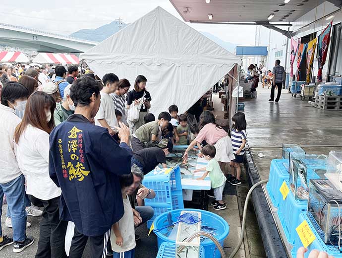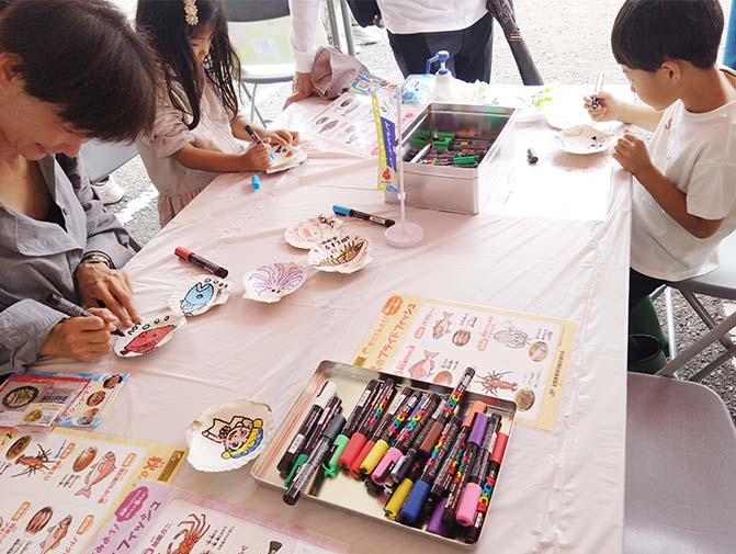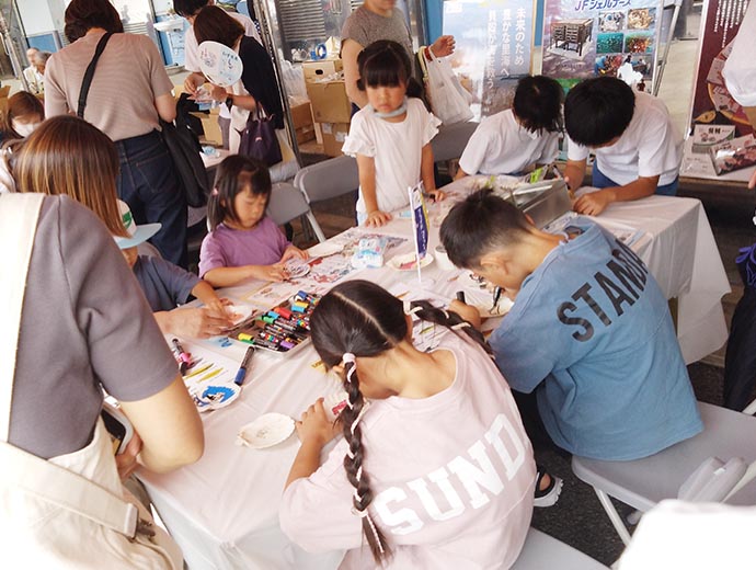 JFレポート 駿河湾の宝石を求め3万人が来場 JF全漁連が「由比桜えびまつり」に初出展 2024.7.29 JF全漁連編集部 印刷する 6月9日、JF由比港などの団体が主催する「由比桜えびまつり」が、静岡県静岡市清水区の由比漁港で開催されました。 「駿河湾の宝石」と称されるほど、希少性が高く甘みと旨味が凝縮されたサクラエビを堪能できるとあって、3万人が来場しました。 ▶プライドフィッシュに登録されている「駿河湾さくらえび」についてはこちら 会場には、地元由比地区の特産品の販売ブースや飲食ブースなど、約50団体が出展した他、ステージイベントや体験乗船、自衛隊や警察車両の展示も行われました。 タッチプールを楽しむ子供たち家族連れで賑わったJF全漁連のブース今回、JF全漁連は初めて「由比桜えびまつり」に出展しました。 JF全漁連のブースでは、プライドフィッシュのPRを行った他、ホタテの貝殻を使った「貝殻お絵かき」を実施。たくさんの家族連れで賑わい、ホタテの貝殻のキャンバスへ、サクラエビやプライドフィッシュのお絵かきを楽しみました。 300枚用意した貝殻が全てなくなるほどの盛況ぶり貝殻に可愛く描かれたプライドフィッシュこの他、サバやカキを使ったカレーとタコやホヤのアヒージョを販売しました。8時に販売をスタートし、11時には完売するほど大盛況! アヒージョやカレーの販売と「貝殻お絵かき」が行われたJF全漁連のブース* * * 開場は8時でしたが7時には並んで待っている人がいたり、サクラエビのかき揚げを販売するブースでは、ピーク時で3時間待ちとなったり、このイベントの人気の高さが至る所でうかがえました。美味しいと楽しいが盛りだくさんの「由比桜えびまつり」でした。 漁協(JF)プライドフィッシュ祭りJF全漁連編集部漁師の団体JF(漁業協同組合)の全国組織として、日本各地のかっこいい漁師、漁村で働く人々、美味しいお魚を皆様にご紹介します。 地域産業としての成功事例や、地域リーダーの言葉から、ビジネスにも役立つ話題も提供します。 SakanadiaFacebookこのライターの記事をもっと読む